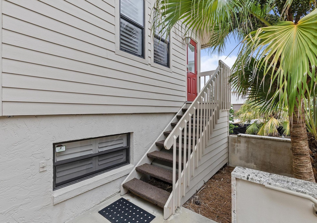 Under the stairs, there is a steel locker where the owner has stored beach chairs for guest use. On the south side of the home is a nice size-secured storage room for additional beach toys.