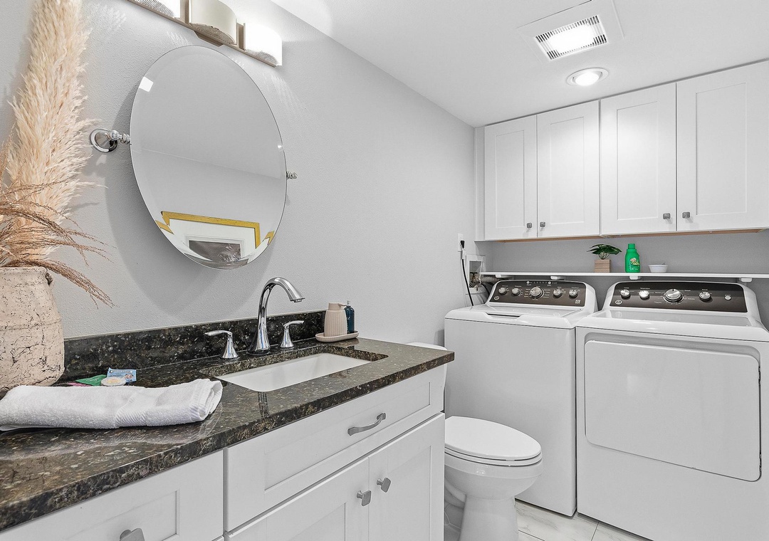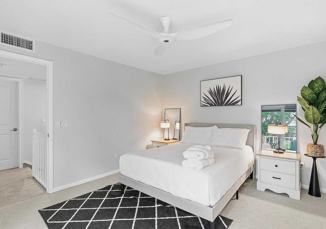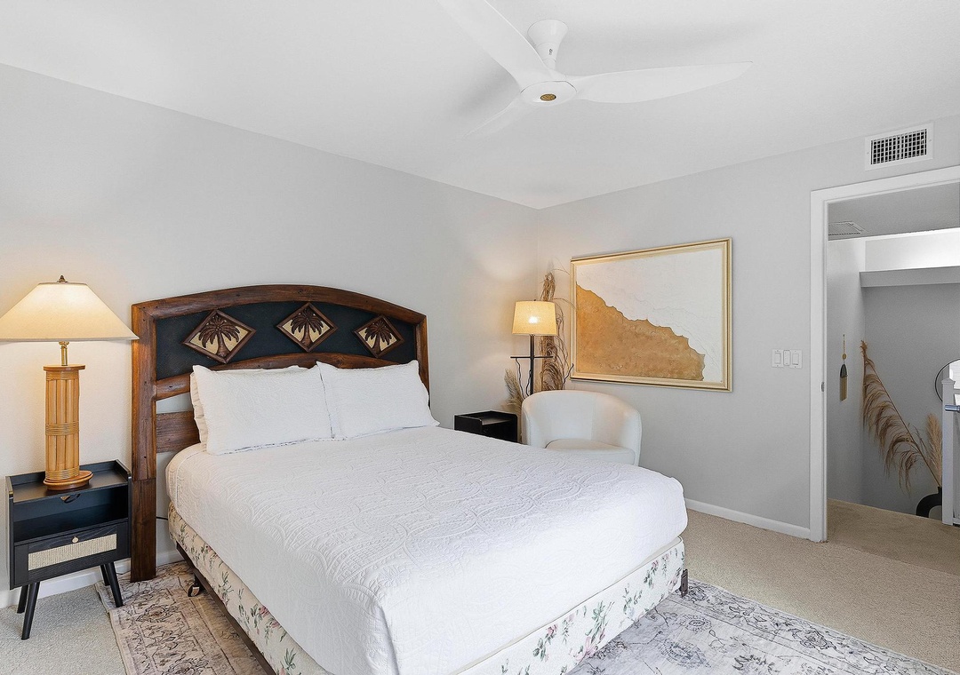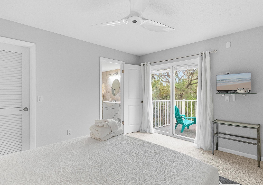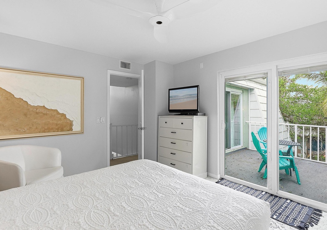 Inside, the townhouse is thoughtfully designed for both comfort and functionality. The first floor features a fully equipped, updated kitchen, a convenient half bath, and a welcoming living area with a sleeper sofa for additional guests. Upstairs, both bedrooms open onto a private second-floor balcony, creating a bright and airy retreat. The primary suite includes a queen bed, walk-in closet, and an ensuite bathroom, while the guest bedroom also offers a comfortable queen bed and easy access to its own full bath. Whether you’re here for a beach getaway or an extended stay, Bahamian Club 124C delivers the space and location to make it memorable.