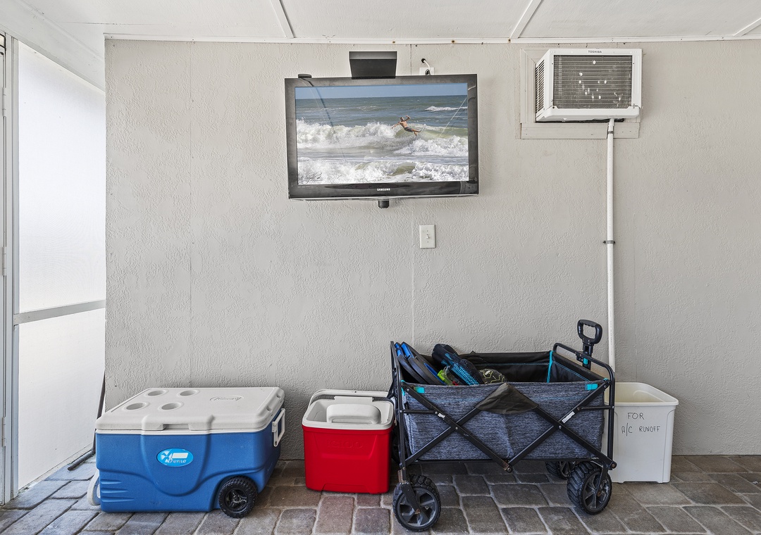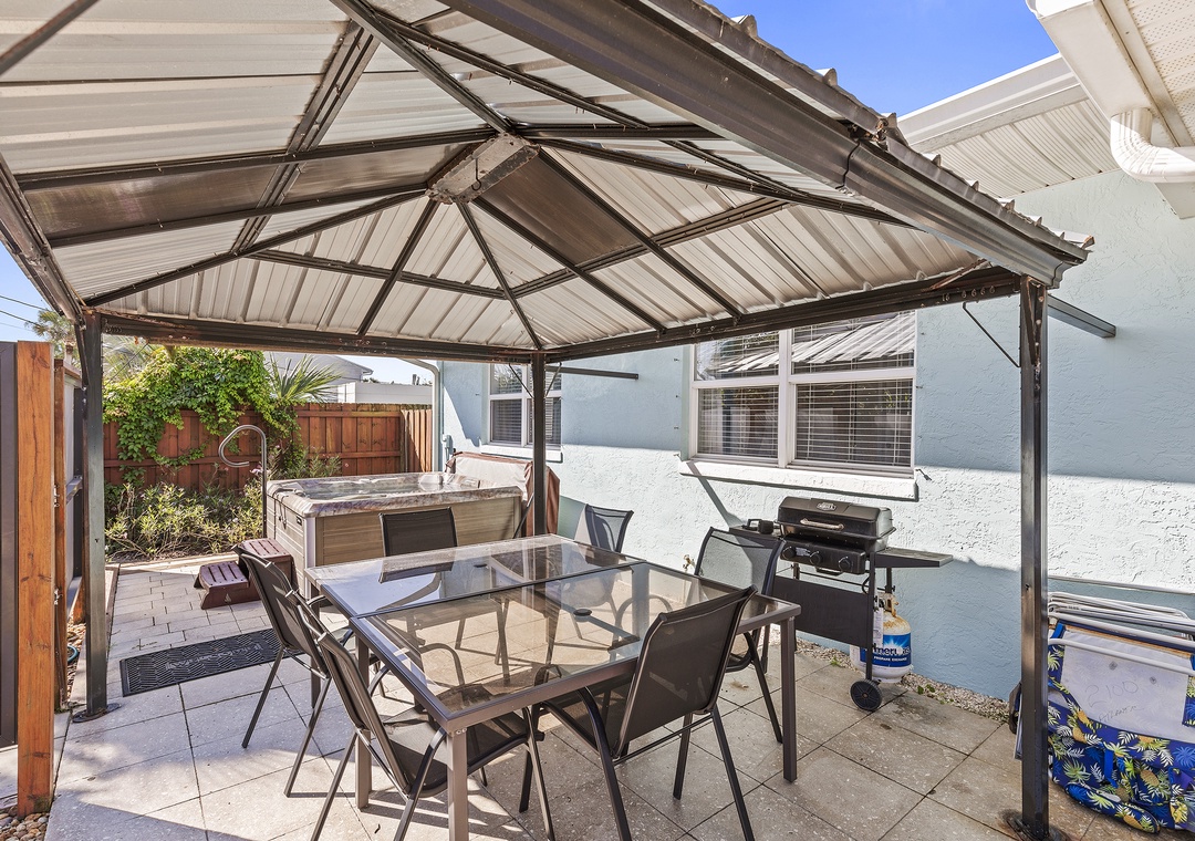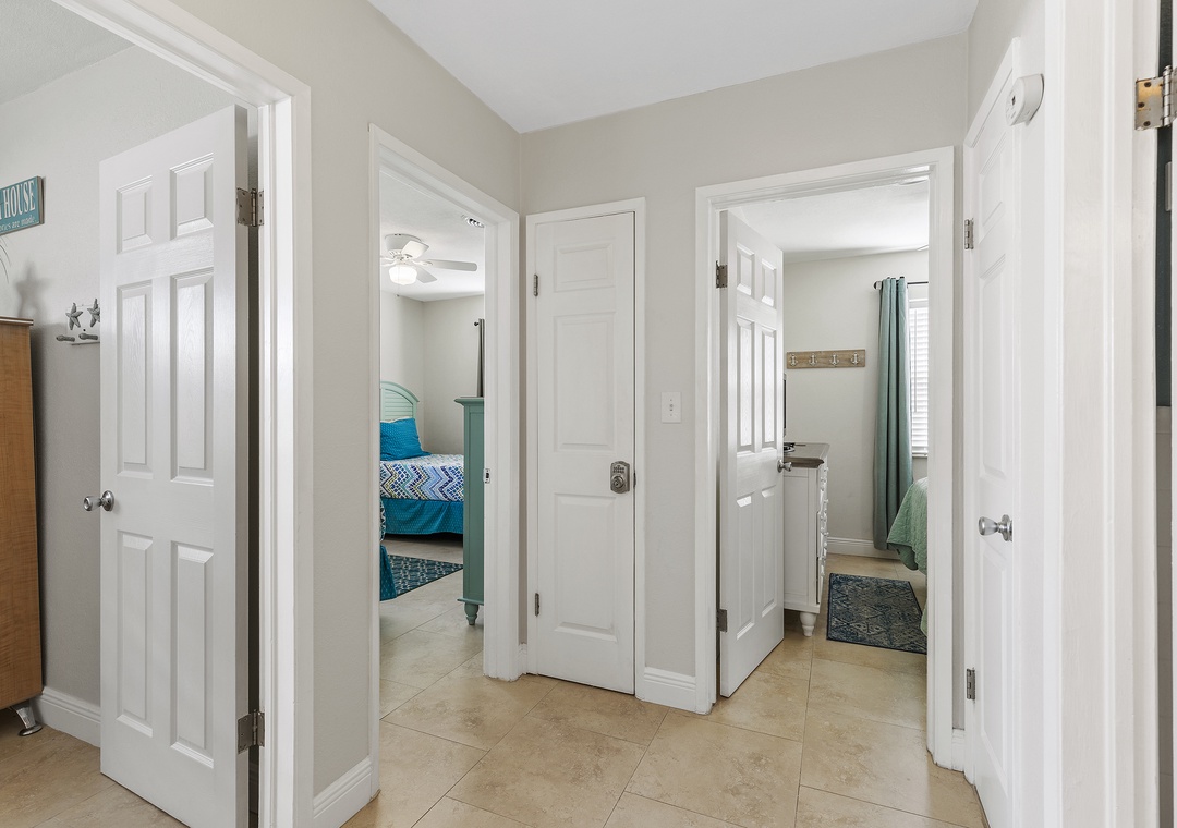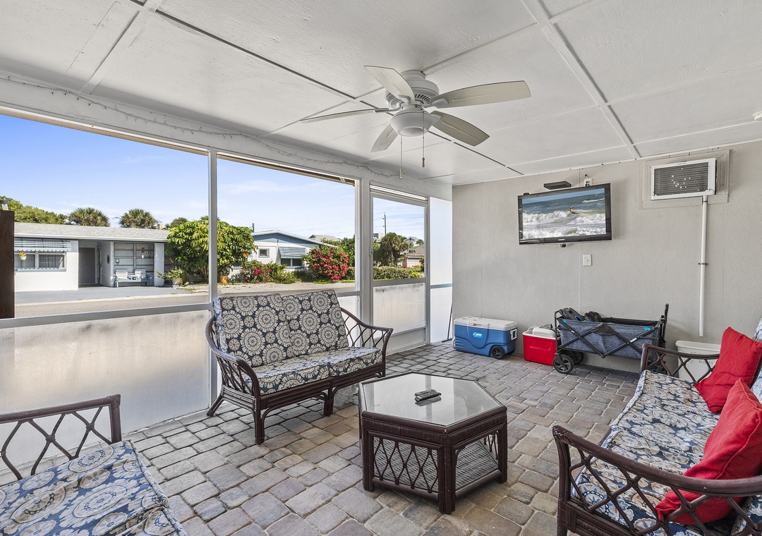 Beachside Oasis is the largest unit of the Grand Oasis triplex, located directly across from the beach. This renovated, three-bedroom, one-bath retreat comfortably sleeps six and offers outdoor amenities like a fire pit, covered patio, hot tub, outdoor shower, and a communal screened-in porch. It’s perfect for a beach getaway and can be rented individually or combined with the Poolside Oasis for larger groups. The triplex offers six bedrooms, three bathrooms, private entrances, and ample parking, all within walking distance of grocery stores, the beach, and restaurants.