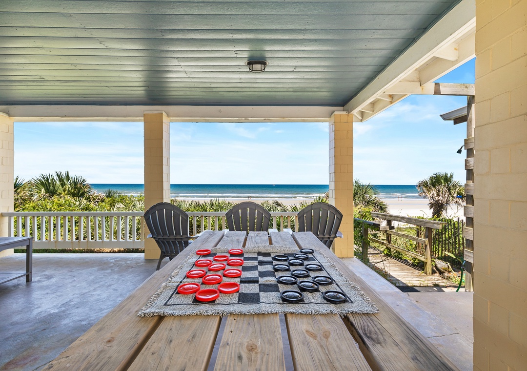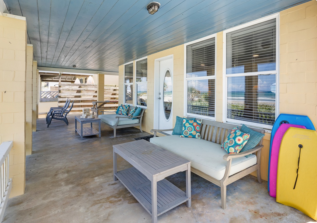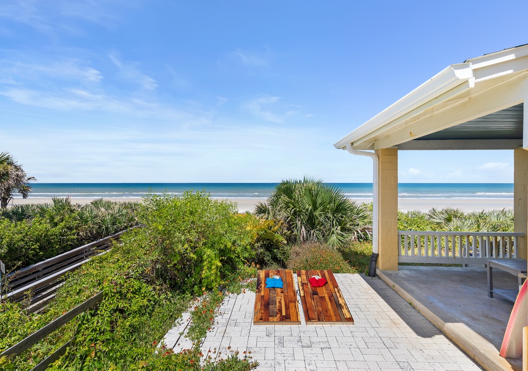 My family just arrived home from our week-long stay at Beachside Vista and we all agree that this oceanfront home is definitely a place we would like to visit again. The home is tastefully updated in the necessary spots but doesn't take away from the charm of the concrete block home. The home resides pretty much in the middle of the "drive" beach, which provided a best case scenario on a crowded weekend day. Monday-Friday on NSB is as good as it gets with little to no traffic, exactly the reason why we keep coming back to our favorite Florida town. The ocean front porch provides seating for many with an awesome view of the sunrise which we took advantage of as often as possible. There is a utility box provided with beach chairs and several foam boogie boards to use as well as an outdoor grill. We did have an issue with the dryer not being able to dry our towels and clothing, but we didn't stress over it because we were on the beach after all. Overall Beachside Vista hit all the bullet points for myself and my family, and we would definitely consider coming back again.- Reviewed On: 5/22/2017