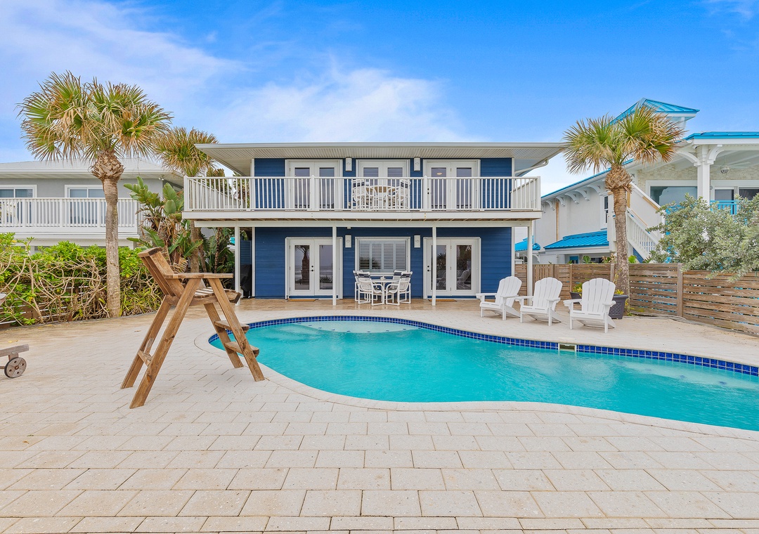 Experience your beach house dreams in this oceanfront getaway, Blue Yonder Beach House. This 4-bedroom, 2.5-bathroom retreat is designed to give families total pampering, unforgettable memories, and the ultimate New Smyrna Beach stay. The Atlantic's crashing waves are in full view whether you sunbathe on the patio, float in the salt-water pool, or sip cocktails from the second-floor balcony.