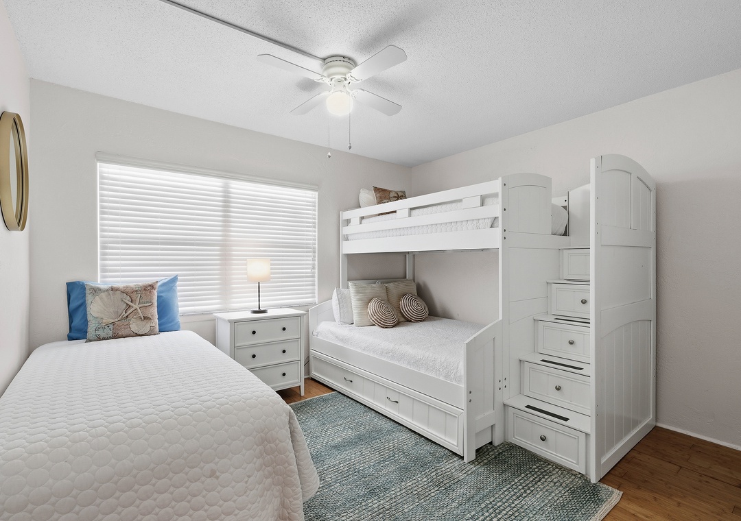 Guest Bedroom: Twin/Double Bunk + Trundle; Twin Bed (sleeps 5)