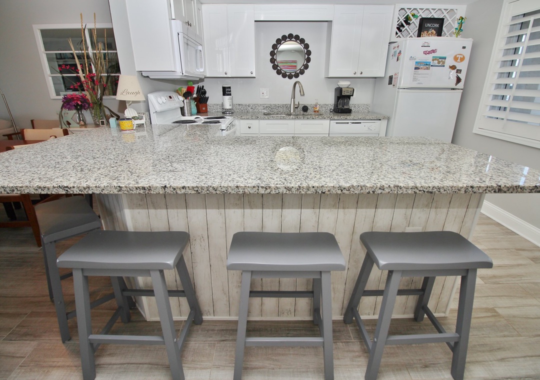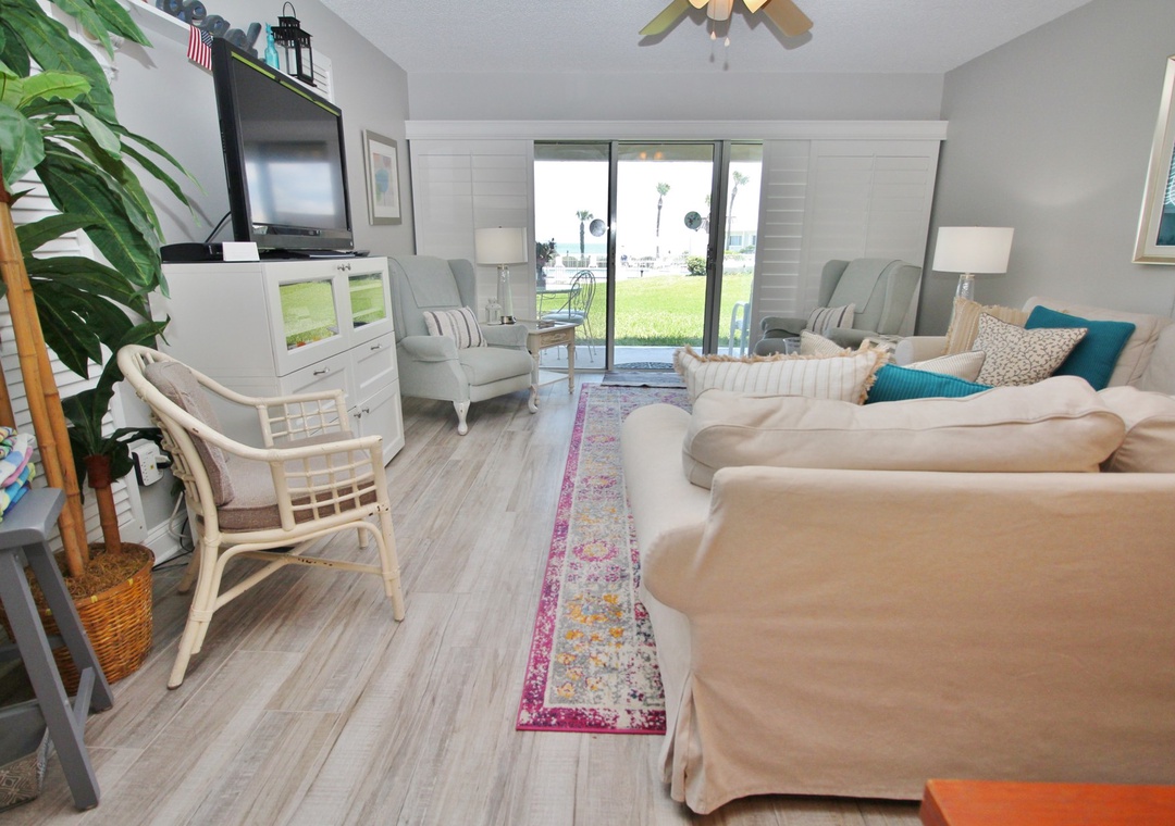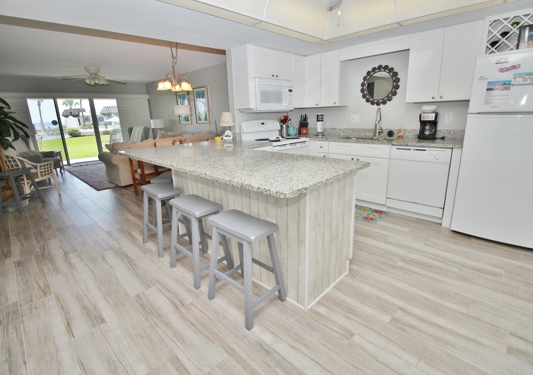 With direct beach access, you can take the stairs down to the sand and enjoy breathtaking sunrises over the Atlantic Ocean. Unit 13C boasts unobstructed views of the sparkling surf and endless ocean. Conveniently located on the ground floor, you’re just steps away from your car—only 10 feet from parking to your front door!