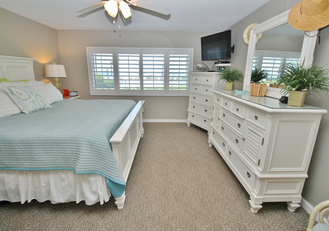 Primary Bedroom: King bed