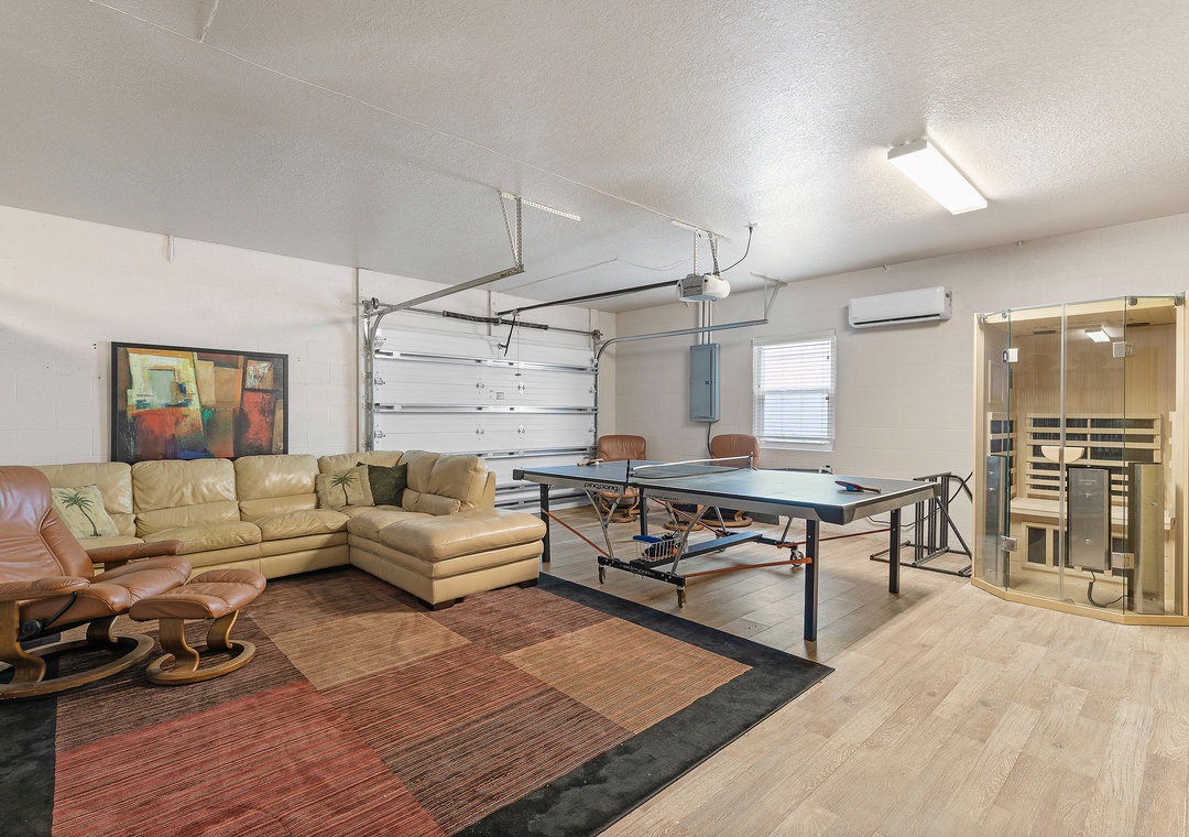 * Fun Rec Room with Ping Pong Table + Mini Fridge