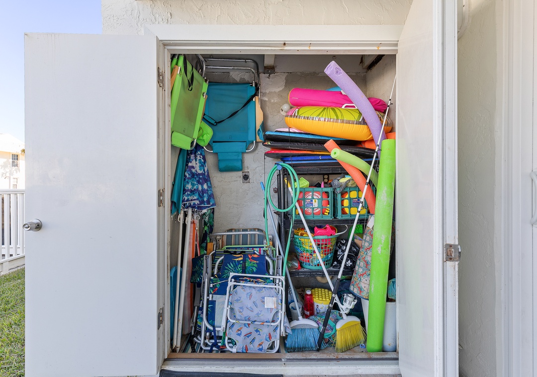 Before you set up your towel and umbrella on the shore, take the time to enjoy your fully furnished, ground-floor patio. This area has modern wood-tile flooring, two cushioned chairs, and a lounger for afternoon naps in the Florida sunshine. As it looks directly onto the complex's pool, you'll find yourself unable to stay here long as you'll frequently be going for swims!