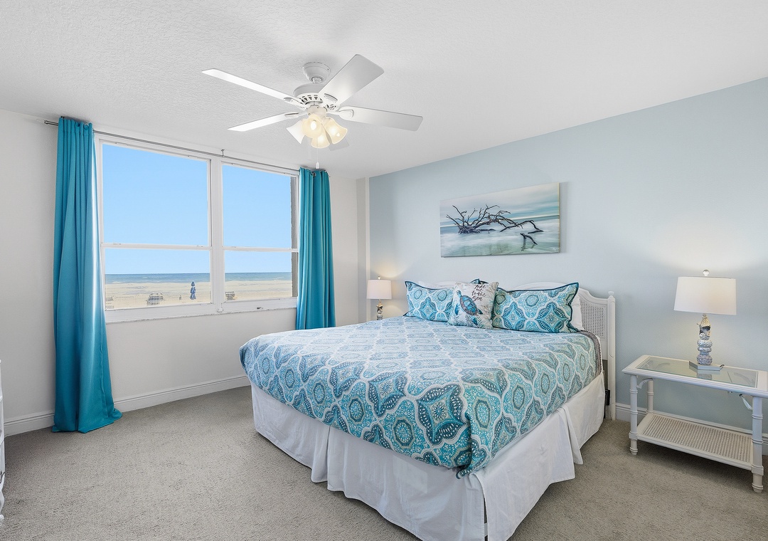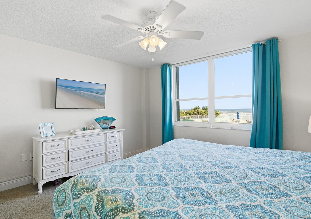 This direct oceanfront, first-floor condo delivers the perfect mix of comfort and location, with beautiful views of the pool and ocean right out front. The two-bedroom unit sleeps up to six and features a king primary suite with an ensuite bath, plus a guest bedroom with two double beds and a separate guest bathroom.