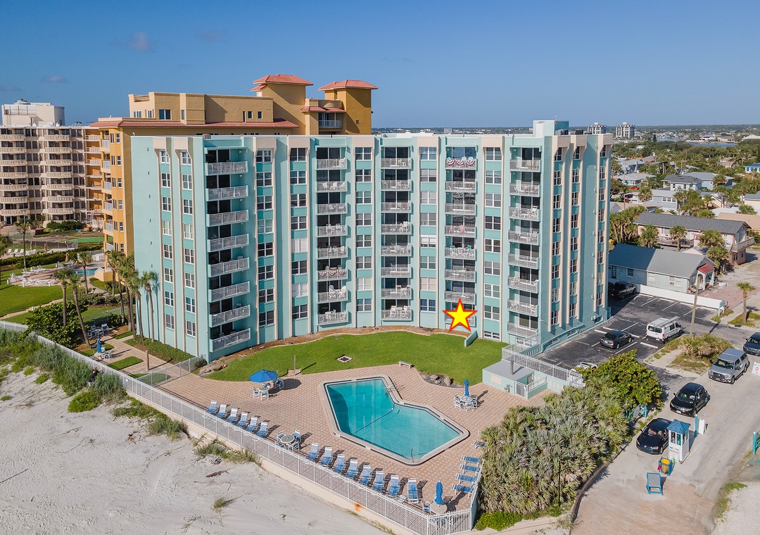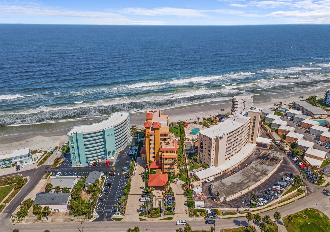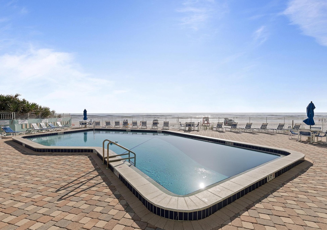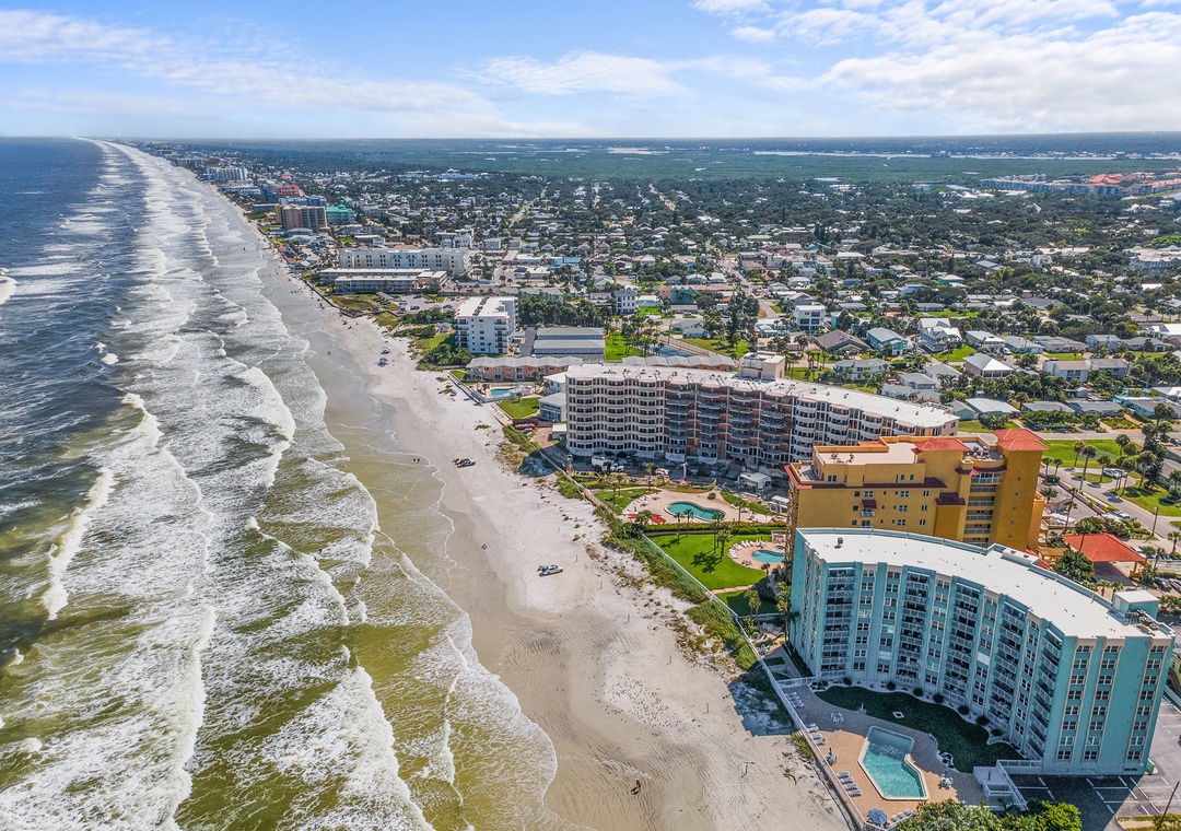 Coronado Towers is an oceanfront condominium complex located on the driving section of the beach, offering stunning direct oceanfront views from every unit. Built in 1969, the complex features 44 spacious two-bedroom/two-bath and three-bedroom/two-bath condos, all designed for comfort and convenience. Each condo includes a fully equipped kitchen, a full-sized washer and dryer, cable TV, free Wi-Fi, fresh linens, and a reserved parking space. Guests can enjoy a heated oceanfront pool just steps from the beach, complete with a pool deck, umbrellas, lounge chairs, and a poolside grilling area overlooking the ocean. The location provides easy access to beach activities such as bicycling, surfing, windsurfing, and fishing, and is just a short seven-minute walk from historic Flagler Avenue, New Smyrna Beach’s lively entertainment district filled with cafes, restaurants, beach bars, and unique shops.