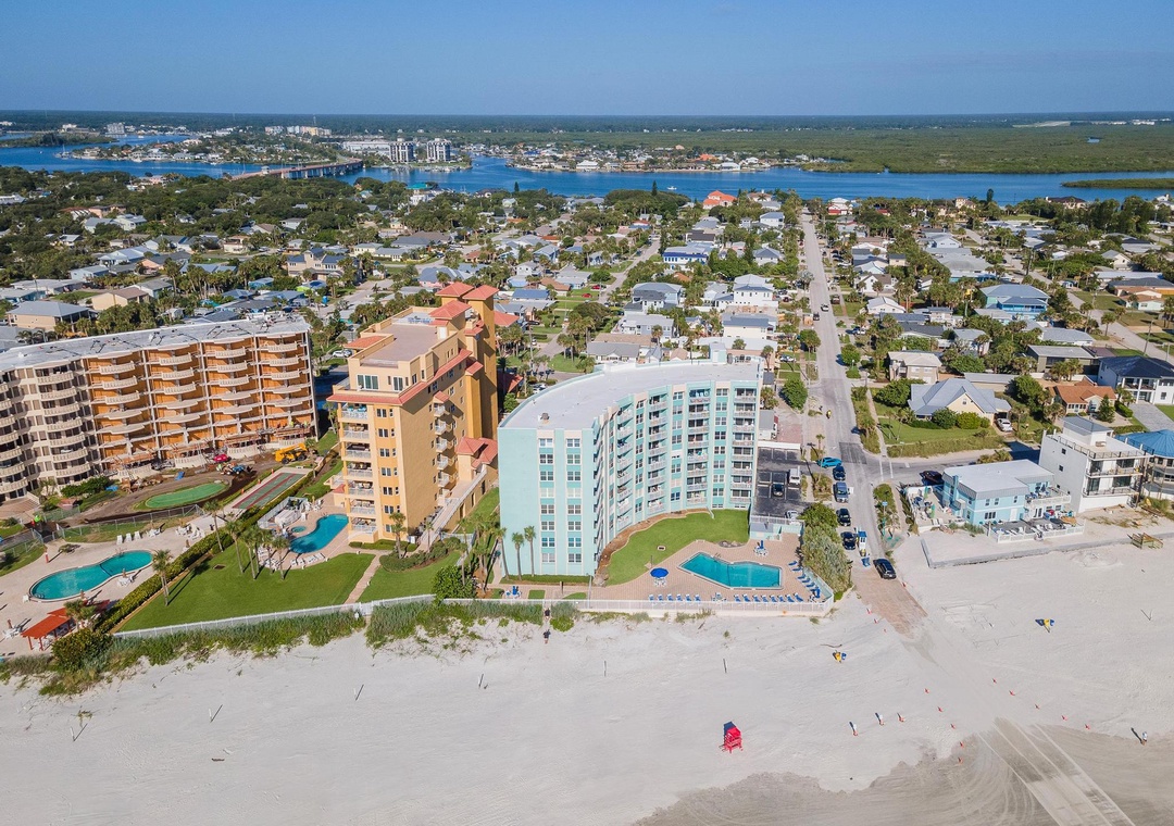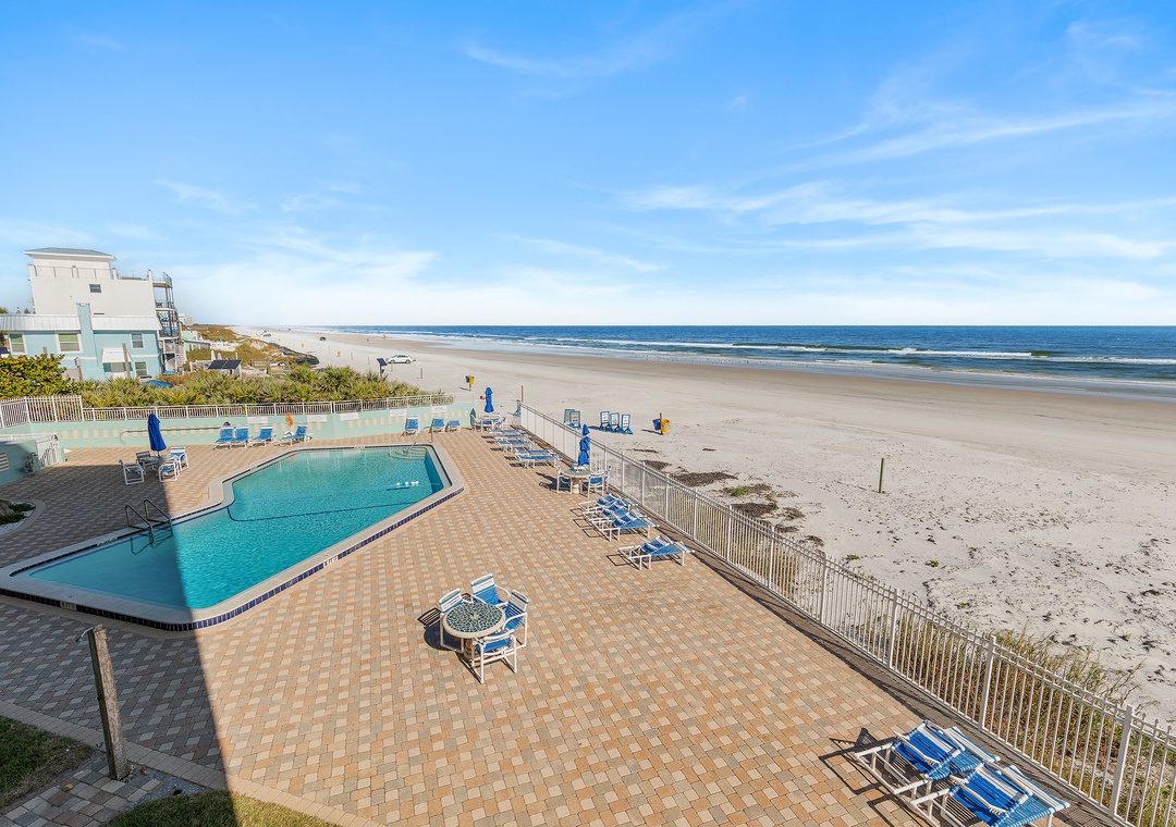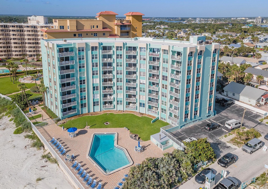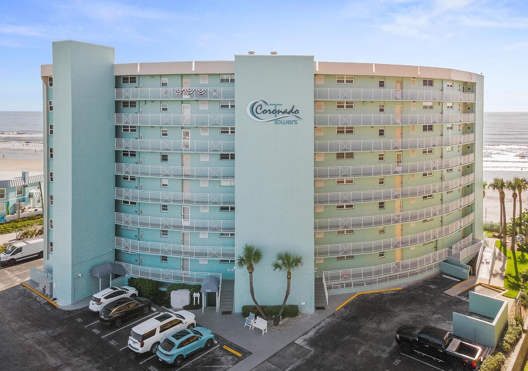 Coronado Towers is an oceanfront condominium complex located on the driving section of the beach, offering stunning direct oceanfront views from every unit. Built in 1969, the complex features 44 spacious two-bedroom/two-bath and three-bedroom/two-bath condos, all designed for comfort and convenience. Each condo includes a fully equipped kitchen, a full-sized washer and dryer, cable TV, free Wi-Fi, fresh linens, and a reserved parking space. Guests can enjoy a heated oceanfront pool just steps from the beach, complete with a pool deck, umbrellas, lounge chairs, and a poolside grilling area overlooking the ocean. The location provides easy access to beach activities such as bicycling, surfing, windsurfing, and fishing, and is just a short seven-minute walk from historic Flagler Avenue, New Smyrna Beach’s lively entertainment district filled with cafes, restaurants, beach bars, and unique shops.