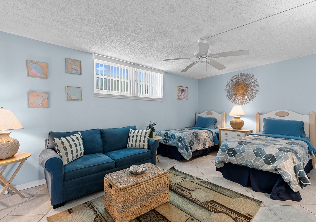 Location of property is great - ocean front. This isn't a luxury resort but it's all you really need. The unit though the 2nd floor still had outstanding views. It's a corner unit 201 and you not only get the balcony view but a wall of windows directly to the ocean. So convenient to Flaggler and lots of food and drinks. Easy walk maybe 5 minutes. Beach access from property pool. Also vehicle access to beach was great for a drive. Even though unit is on the beach it was nice to pack the car with chairs, tents and all the beach stuff and drive right on the beach to park and set up for the day. Just load the truck back up for the next day and not have to haul anything from the room. $20 per day gives you 1 day access. Week long pass was $100 which is what we did. Unit had everything we needed, plenty of towels and sheets. Very clean and a nice layout that easy accommodated my wife and i and 2 kids. The master was very good size. second bedroom had 2 twin beds and a sleeper sofa so more could sleep in that room. Master bed wasn't the greatest but doable for a week. Comfortable couches. Very close to Publix . would stay there again. Pool was decent too.- Reviewed On: 8/7/2019