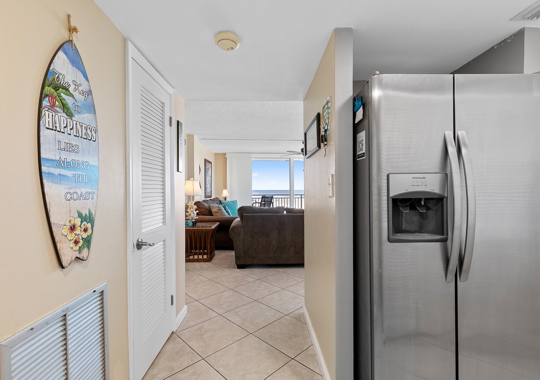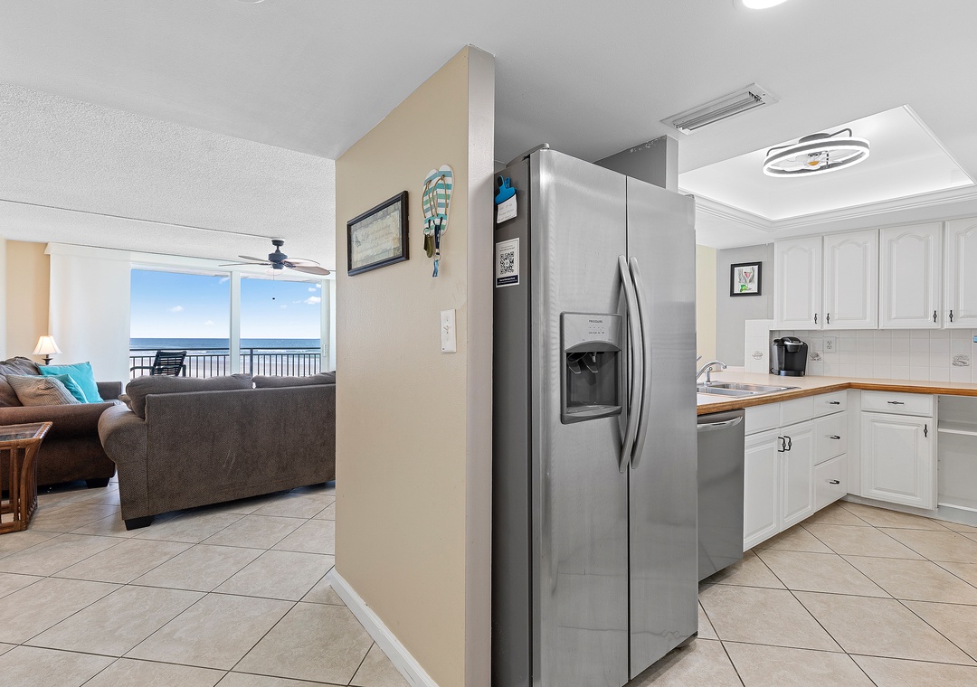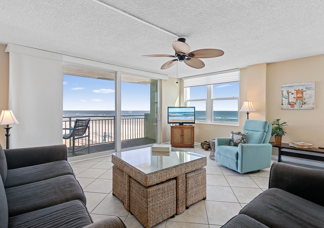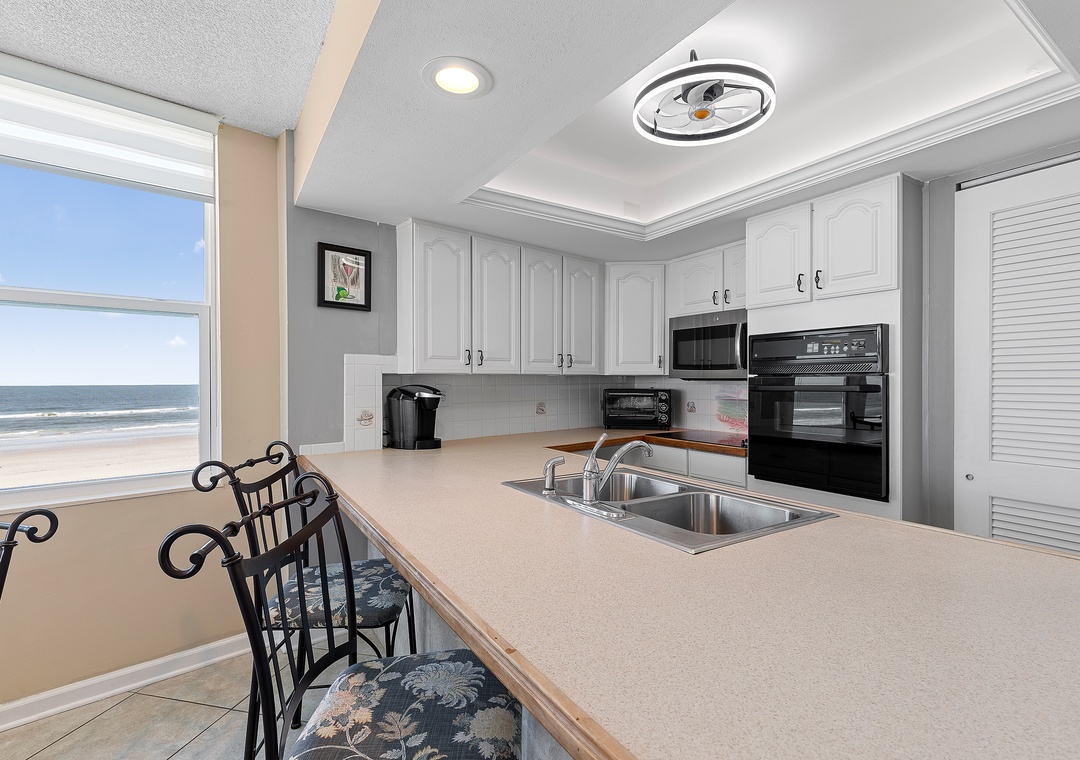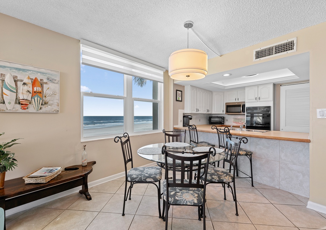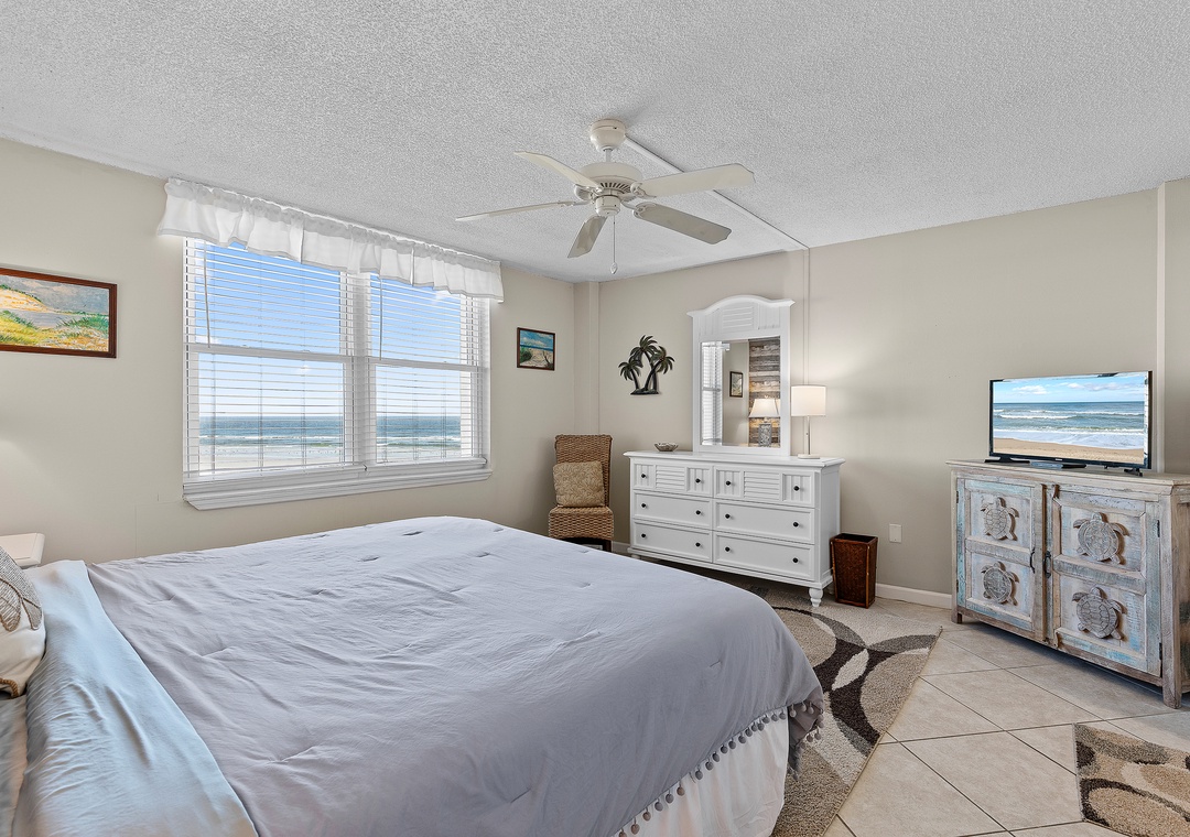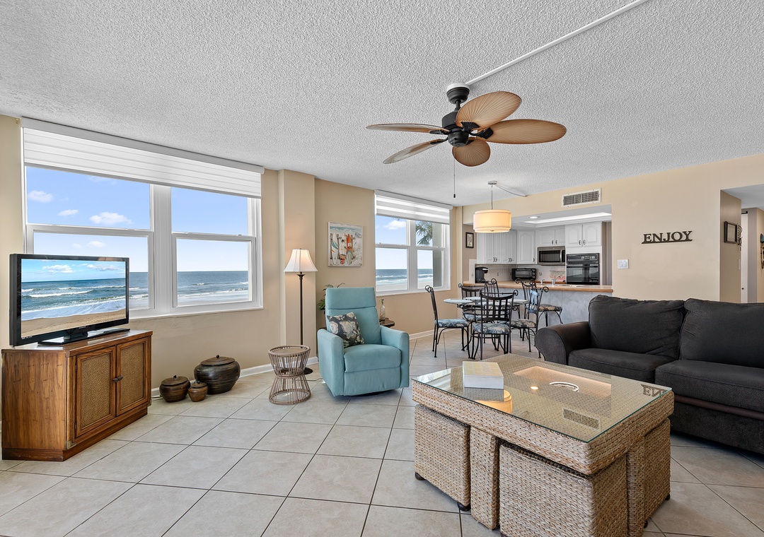 I have to admit we chose this condo just for the fabulous ocean view -- that really makes my vacation special. It's a corner unit, and we could see the ocean and beautiful beach from our bedroom, living room and dining area. There's also a good sized balcony that overlooks the beach and pool area. The living area and bedrooms were really big and decorated nicely. The kitchen functioned well for the small amount of cooking we did. There were beach chairs, sand toys and even a cooler available to use. Everything you would need for a beach vacation. And we loved being able to take a short walk down the beach and then up Flagler for eating, shopping, etc. Would definitely stay here again, and I'm recommending it to friends as well. Very nice!- Reviewed On: 12/17/2015