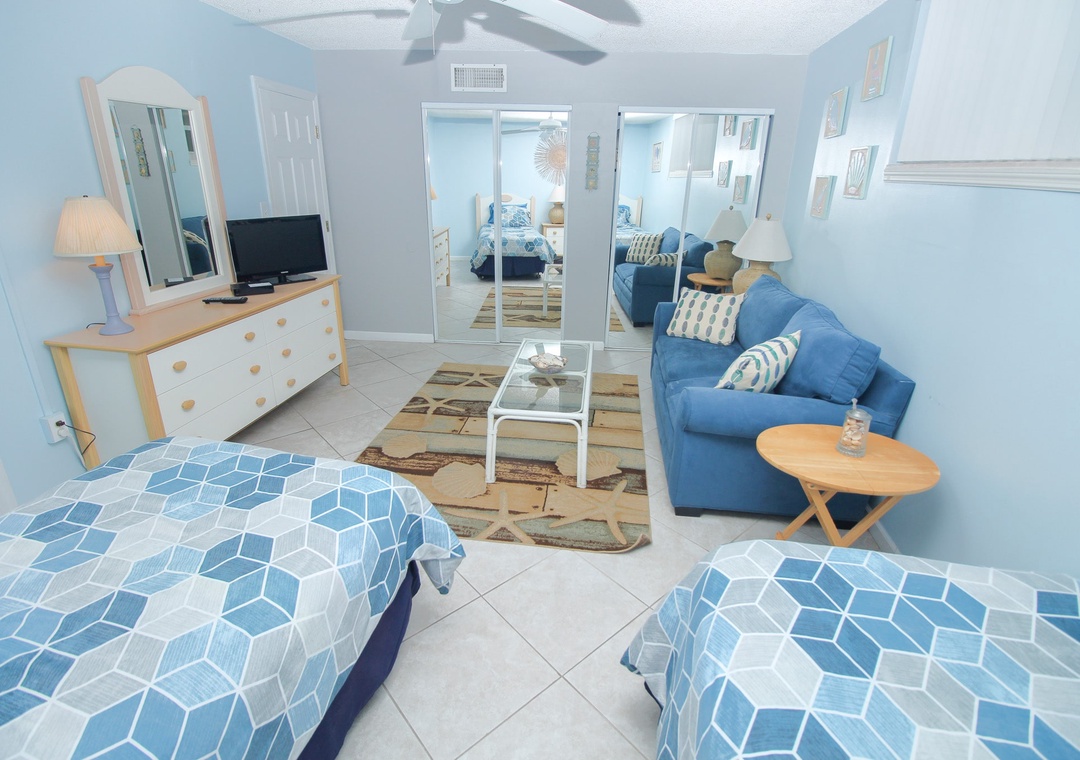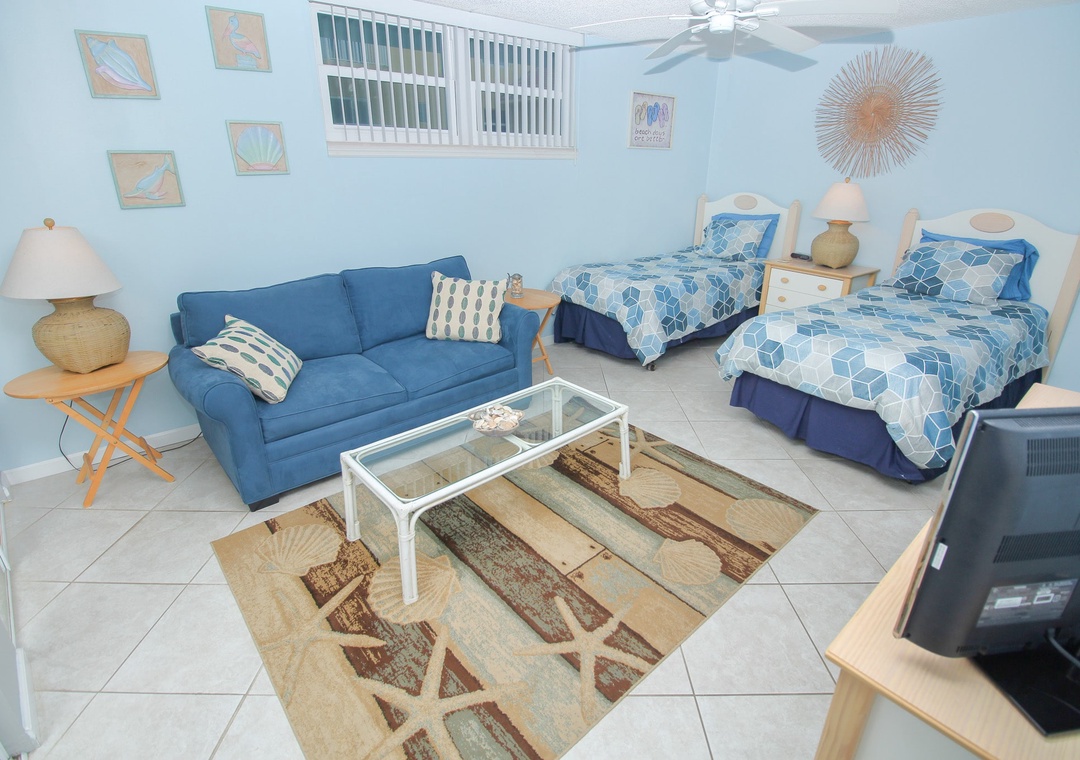 Location of property is great - ocean front. This isn't a luxury resort but it's all you really need. The unit though the 2nd floor still had outstanding views. It's a corner unit 201 and you not only get the balcony view but a wall of windows directly to the ocean. So convenient to Flaggler and lots of food and drinks. Easy walk maybe 5 minutes. Beach access from property pool. Also vehicle access to beach was great for a drive. Even though unit is on the beach it was nice to pack the car with chairs, tents and all the beach stuff and drive right on the beach to park and set up for the day. Just load the truck back up for the next day and not have to haul anything from the room. $20 per day gives you 1 day access. Week long pass was $100 which is what we did. Unit had everything we needed, plenty of towels and sheets. Very clean and a nice layout that easy accommodated my wife and i and 2 kids. The master was very good size. second bedroom had 2 twin beds and a sleeper sofa so more could sleep in that room. Master bed wasn't the greatest but doable for a week. Comfortable couches. Very close to Publix . would stay there again. Pool was decent too.- Posted: 8/3/2019