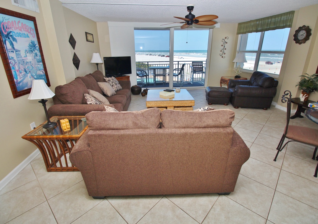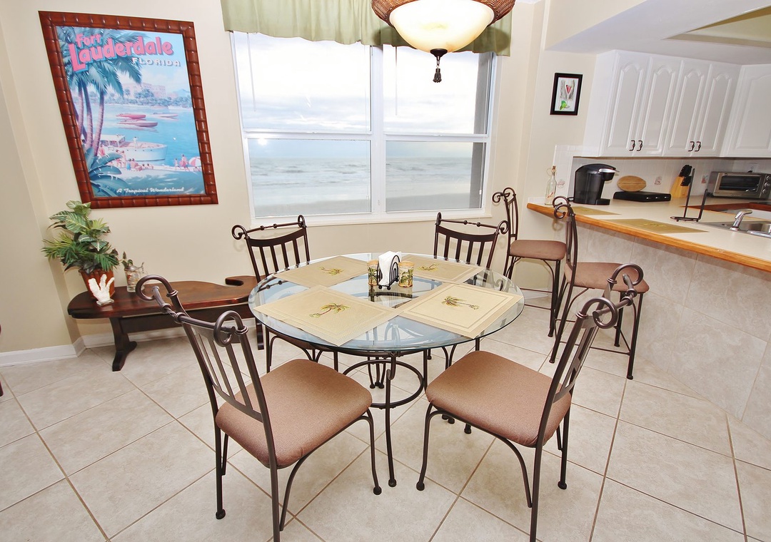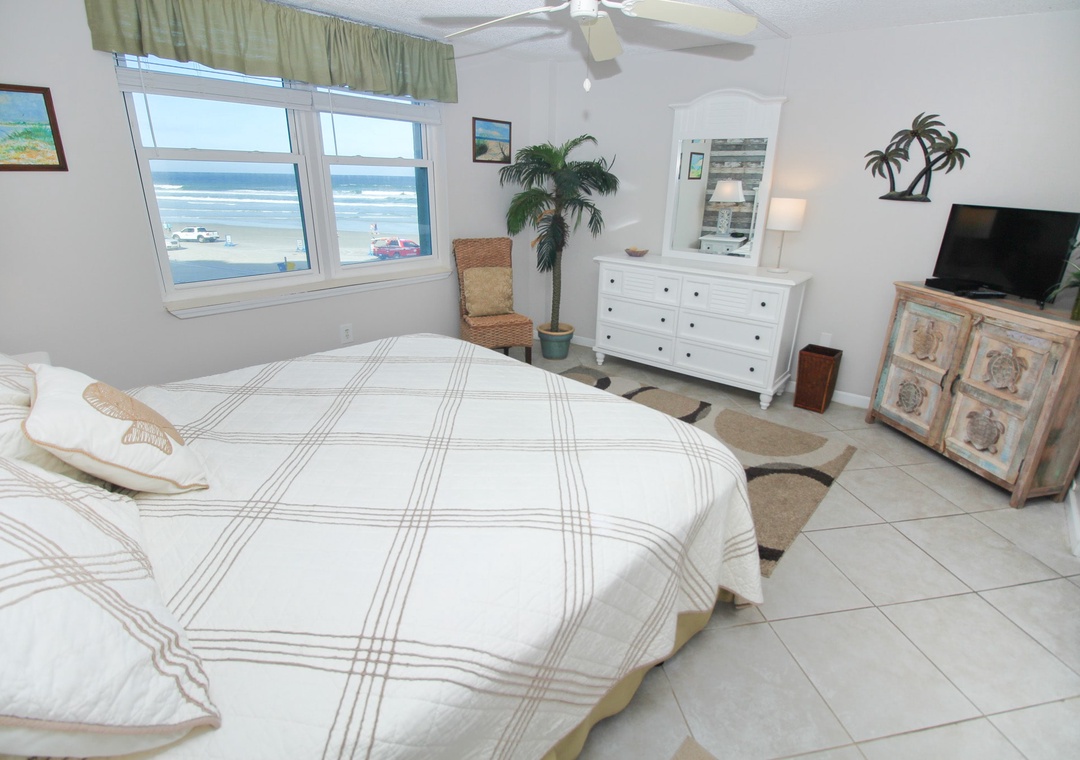 I have to admit we chose this condo just for the fabulous ocean view -- that really makes my vacation special. It's a corner unit, and we could see the ocean and beautiful beach from our bedroom, living room and dining area. There's also a good sized balcony that overlooks the beach and pool area. The living area and bedrooms were really big and decorated nicely. The kitchen functioned well for the small amount of cooking we did. There were beach chairs, sand toys and even a cooler available to use. Everything you would need for a beach vacation. And we loved being able to take a short walk down the beach and then up Flagler for eating, shopping, etc. Would definitely stay here again, and I'm recommending it to friends as well. Very nice!- Posted: 12/17/2015