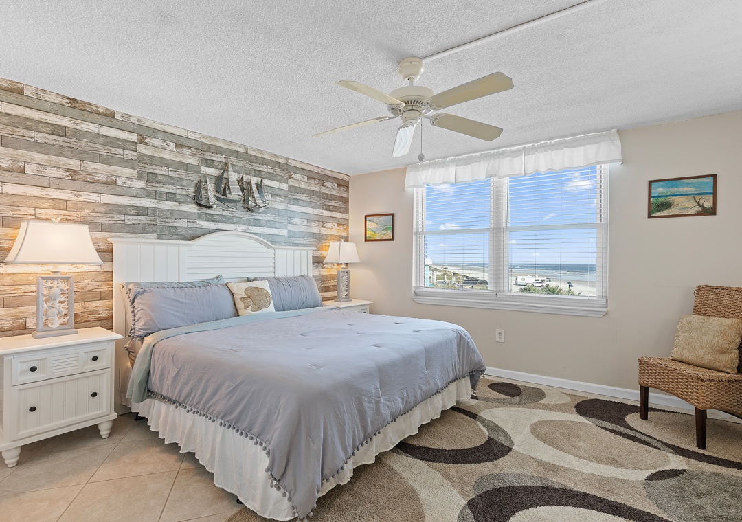 My husband and I met my sister and her husband for a one week New Smyrna Beach vacation. The unit was ideal with the bedrooms being bigger than I expected. Actually everything was bigger and better than I expected--even the closets. And the spectacular view was a big bonus because we could see everything going on all the way down the beach with the corner windows. I ended up bringing way too many things that I didn't need such as beach towels, chairs, cause everything was provided. Nice quick walks to Flagler's restaurants and bars. Will stay again!- Reviewed On: 10/5/2015