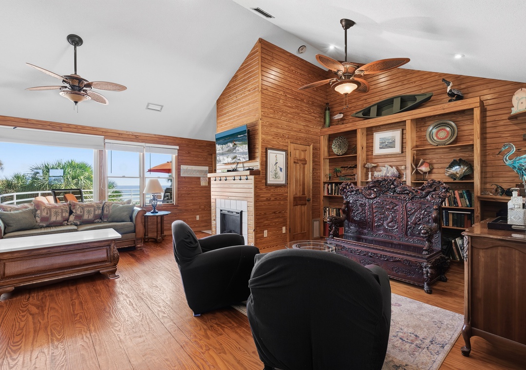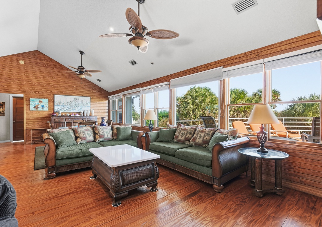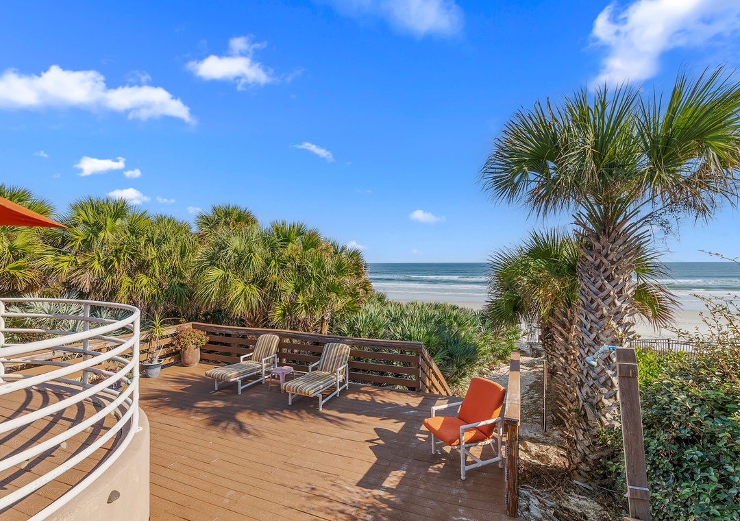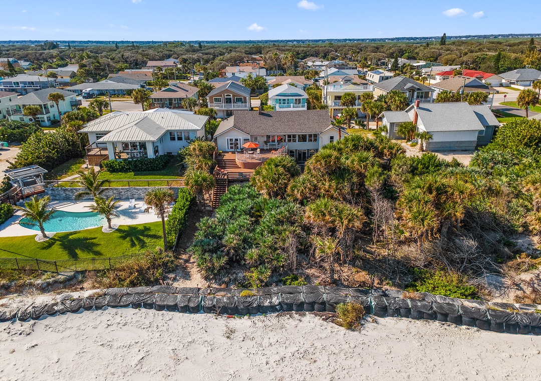 Welcome to Decked Out House on Hill St! This laid-back, pet-friendly oceanfront home is the perfect place to unwind, kick off your shoes, and settle into an easygoing New Smyrna Beach vibe. Warm, wood-filled spaces and a wall of windows bring the outdoors in, giving the whole home a cozy, well-loved feel rather than anything fancy or formal. Multiple spacious decks stretch toward the shoreline, offering plenty of room to sunbathe, lounge, grill out, or gather around the firepit under the moonlit sky. A private pool adds to the relaxed, secluded atmosphere—ideal for cooling off after a day on the sand or simply enjoying a quiet morning float.