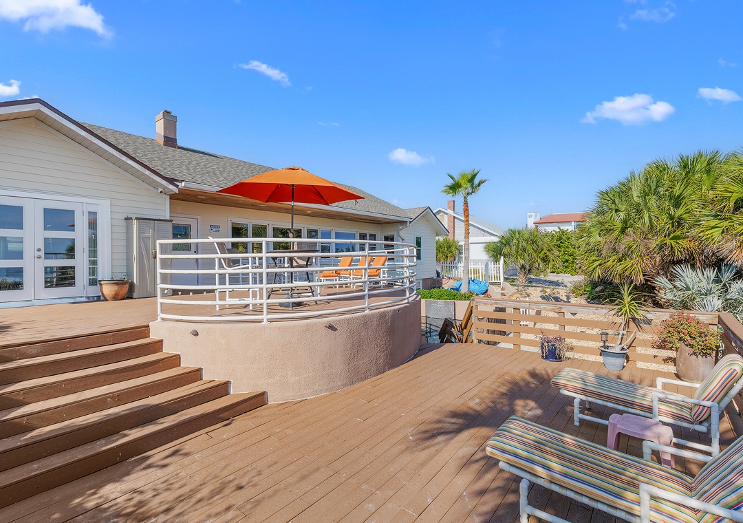 This is an unbelievable house that is located beachside and convenient to all of New Smyrna Beach! Deck is so unbelievable; we essentially lived on the deck. Interior is so nicely decorated it is hard to realize you are at a beach house. Kitchen is well laid-out and furnished and functional. Also liked the downstairs bedroom with additional privacy and private access. Highly recommend for luxurious beachside vacation for the entire extended family!- Reviewed On: 4/15/2019