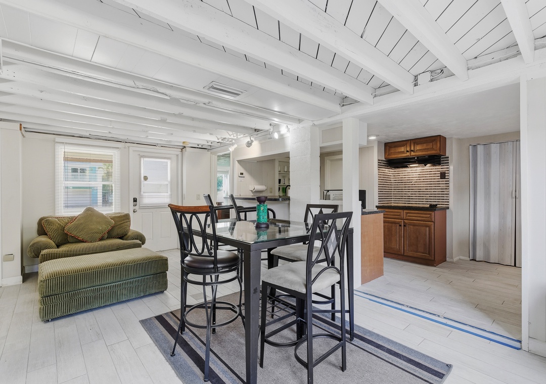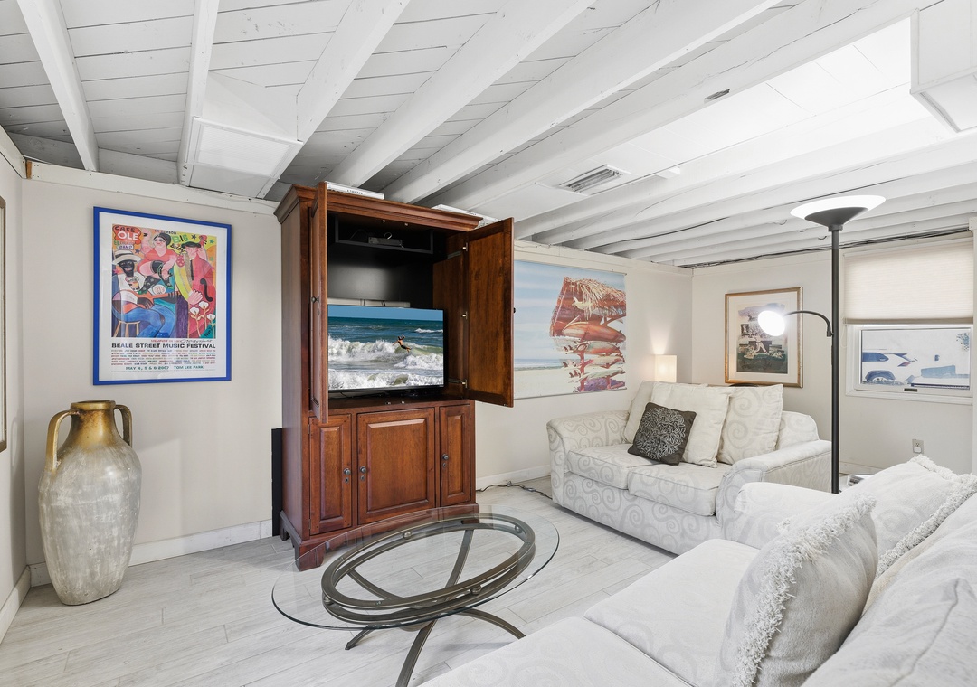 Inside, the home features four bedrooms and three bathrooms, including a comfortable primary king suite with deck access and sweeping ocean views. Two additional queen bedrooms provide space for family and friends, while the ground-floor queen studio—located at pool level—offers the perfect bit of separation with its own kitchenette, bathroom, and roomy living area. With amenities like a washer and dryer, parking for up to four cars, and plenty of beach gear ready for your use, Decked Out House on Hill Street delivers an easy, welcoming beach getaway where you can relax, reconnect, and savor the simple joys of coastal living.