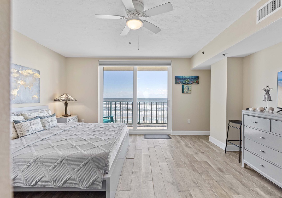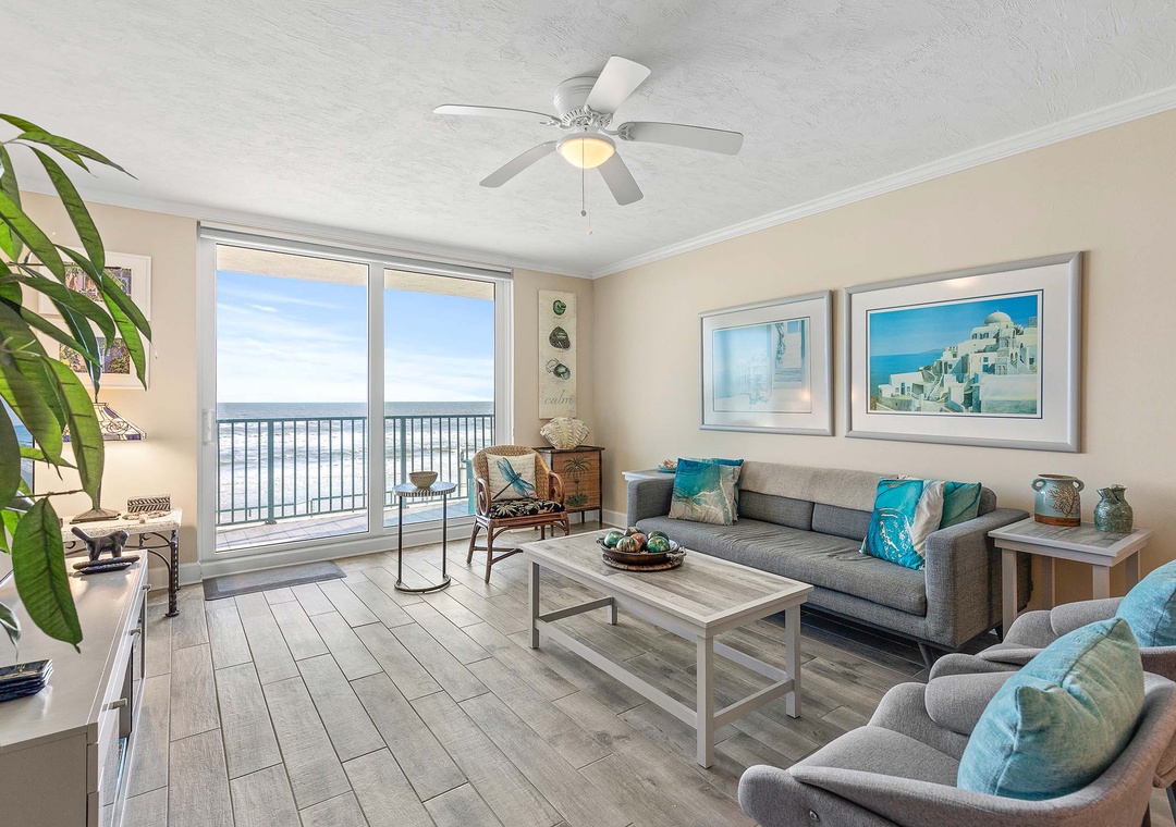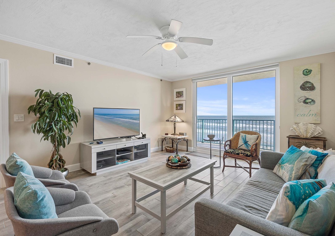 Welcome to DiMucci Tower 201, experience coastal luxury at its finest! This stunning 3-bedroom oceanfront condo in Daytona Beach Shores comfortably sleeps six and offers breathtaking ocean views from both the living room and your private balcony. Nestled in the exclusive DiMucci Tower, with only 28 units in a 7-story building, this property combines tranquility with elegance.