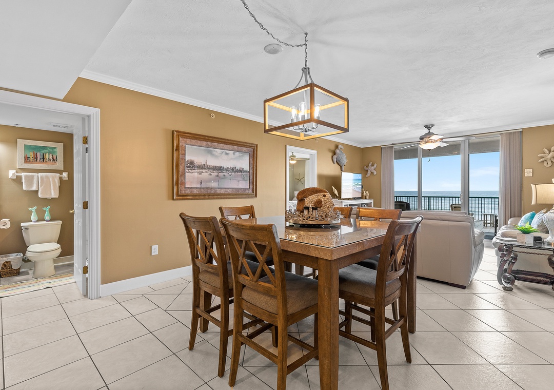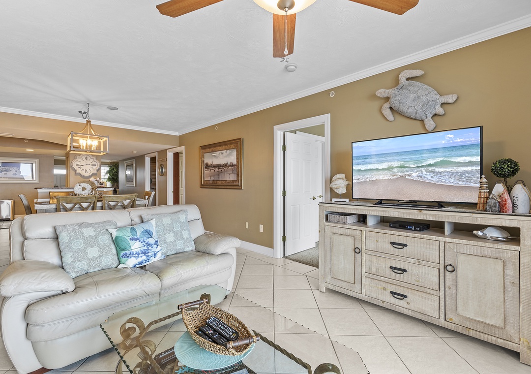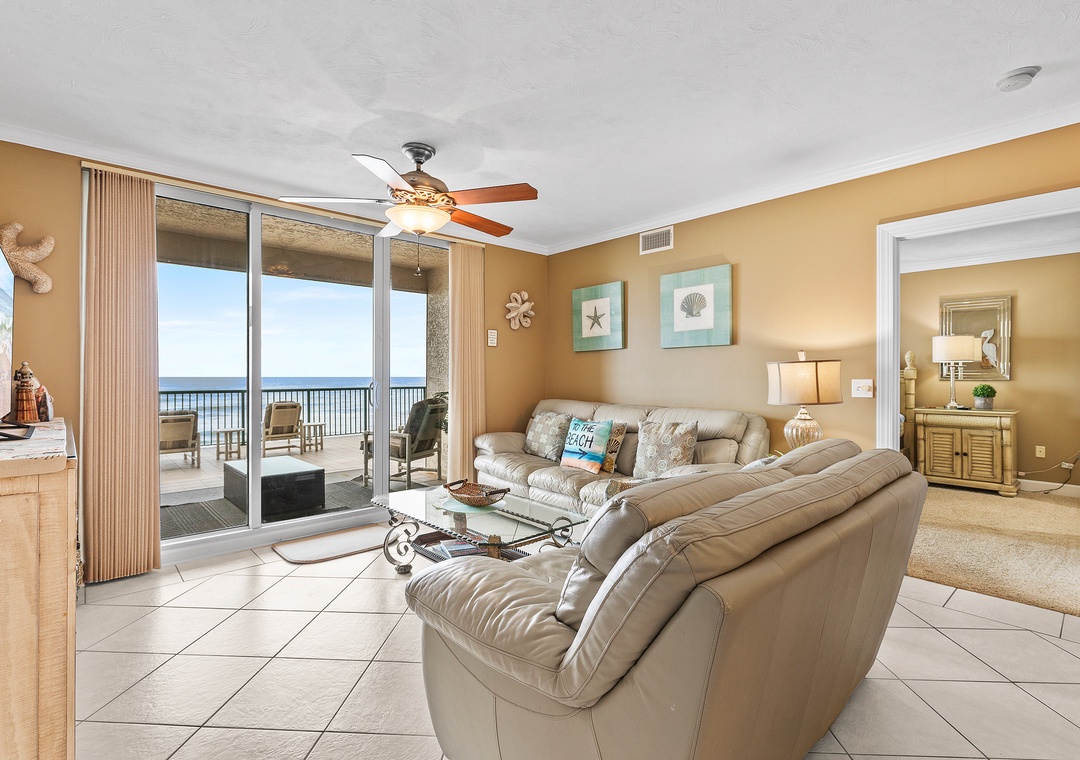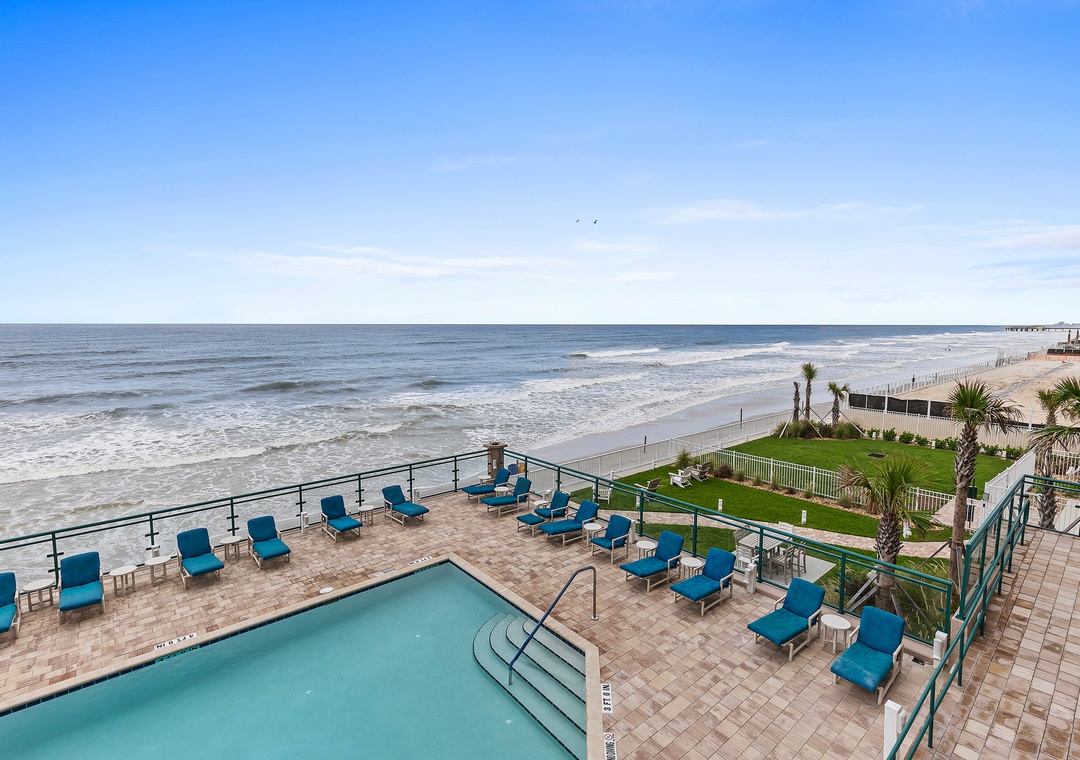 DiMucci Twin Towers Unit 206 is exceptional from every angle, replete with first-class amenities, and will soon become your favorite vacation spot. The moment you walk into this luxurious open floor plan, the captivating oceanfront views grab your eye – our panoramic views span the entire sunset den, living room, dining, and kitchen area as well as both oceanfront suites. The extraordinary split bedroom floor plan offers ultimate privacy for everyone. This stunning 3-bedroom, 3-bathroom condo accommodates 8 guests comfortably. The primary bedroom features a king bed, the secondary primary bedroom also has a king bed, and the second guest bedroom is equipped with two full beds. There’s a sleeper sofa in the sunset den for additional comfort. The fully stocked kitchen has everything you need to cook a delicious meal. Come see why the fun never stops at Daytona Dimucci Twin Towers 206!