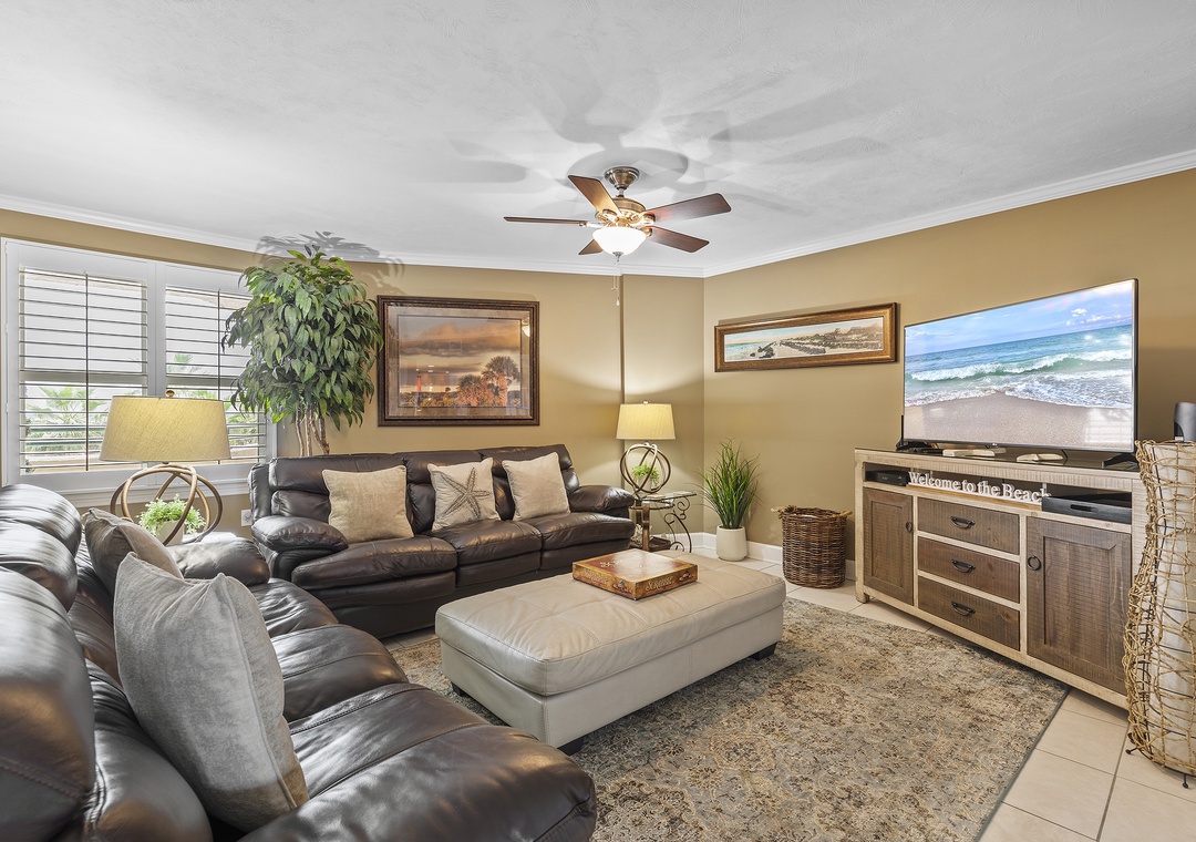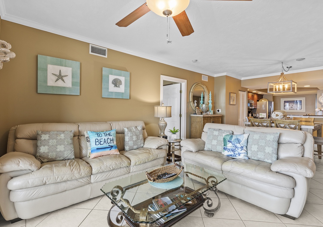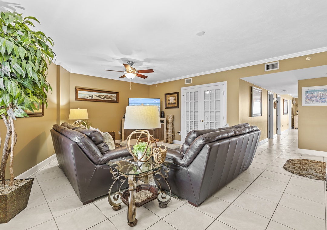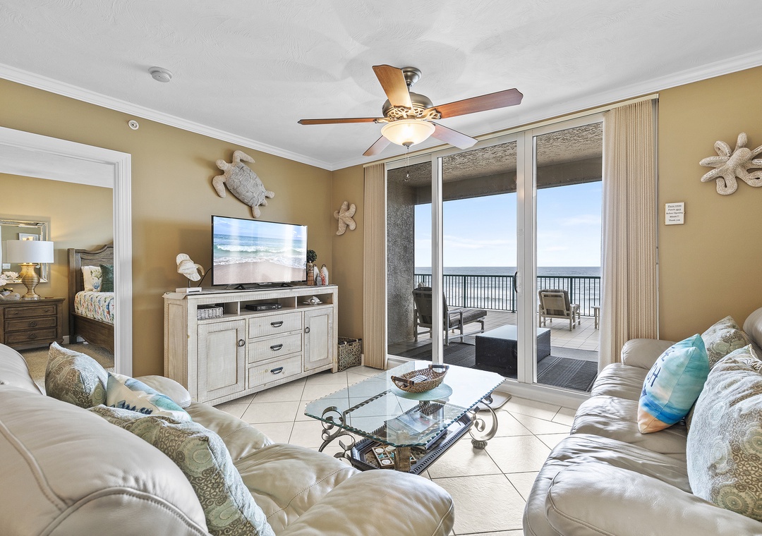 DiMucci Twin Towers Unit 206 is exceptional from every angle, replete with first-class amenities, and will soon become your favorite vacation spot. The moment you walk into this luxurious open floor plan, the captivating oceanfront views grab your eye – our panoramic views span the entire sunset den, living room, dining, and kitchen area as well as both oceanfront suites. The extraordinary split bedroom floor plan offers ultimate privacy for everyone. This stunning 3-bedroom, 3-bathroom condo accommodates 8 guests comfortably. The primary bedroom features a king bed, the secondary primary bedroom also has a king bed, and the second guest bedroom is equipped with two full beds. There’s a sleeper sofa in the sunset den for additional comfort. The fully stocked kitchen has everything you need to cook a delicious meal. Come see why the fun never stops at Daytona Dimucci Twin Towers 206!