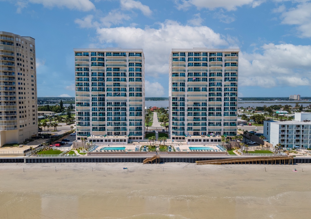 DiMucci Twin Towers is a two-19-story condominium buildings complex. 68 units in each of the two 19-story towers. All units are direct oceanfront with rooms going west to east, so you have both the river (Intracoastal) and the Ocean. The underground garage is stretching under both buildings. Each of the buildings has its oceanfront club rooms and gyms, each has its pool and hot tub. Twin Towers offers a wealth of community amenities as well, so you can enjoy all the fruit of beachside living, and this condo complex is still convenient to excellent shopping and dining, with area attractions only a short drive away.
