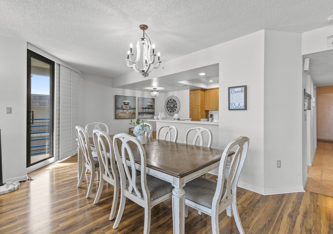 Escape to a luxurious beach getaway at Ebb Tide 301, where you’ll be treated to stunning views of the Ebb Tide pool, beautifully lit at night, and the endless Atlantic waves rolling in. This spacious three-bedroom, three-bathroom condo sleeps up to 8 guests, offering a perfect retreat for families or small groups. The unit features a fully stocked and recently updated kitchen, expansive living and dining areas, and a third-floor balcony that provides breathtaking views of the pool and ocean. The primary bedroom is a peaceful haven, with a king-size bed, TV, and sweeping ocean views from a full wall of windows and a glass door. The en-suite bathroom includes a walk-in shower for your convenience. The second bedroom is furnished with a king bed, and the third bedroom provides a queen bed along with two twin beds—ensuring plenty of space for all guests. Additional amenities include a washer/dryer inside the unit, covered parking, an elevator for easy access, and access to fantastic community features such as a private tennis court, a pool with a spa, an exercise room with cable TV, weight machines, and facilities for jogging, cycling, and more. Guests can also enjoy a gas grill and wireless internet in the pool area. For added fun and convenience, guests can enjoy surfboards, kayaks, paddle boards, and bikes during their stay. Beach essentials such as chairs and beach toys are also stored in the garage, making it easy to take full advantage of the beautiful beach just steps away. Make unforgettable memories at Ebb Tide 301—your perfect home away from home in New Smyrna Beach!