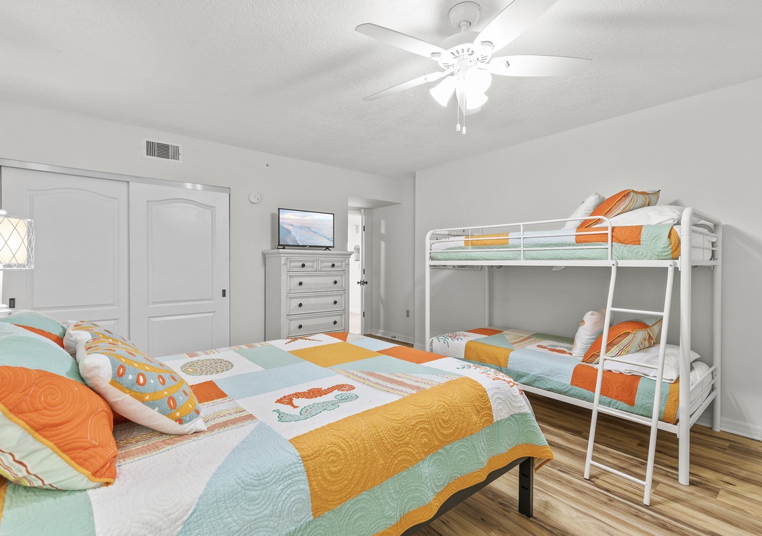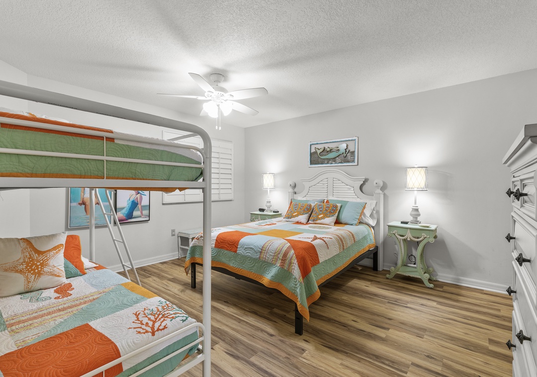 Guest Bedroom 2: Queen Bed and Two Twin Beds (Bunk Bed)