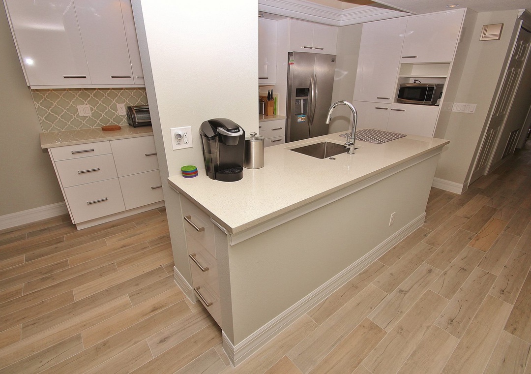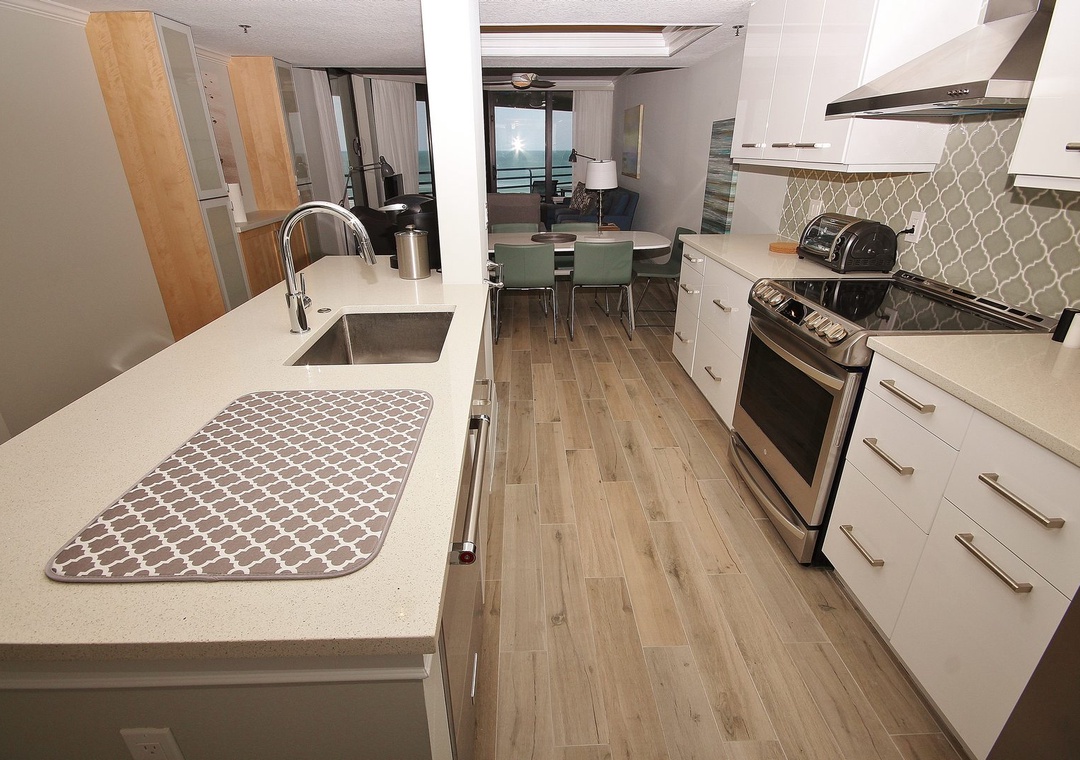 Beautiful, clean and comfortable condo. Kitchen is fully equipped to cook all of your meals.