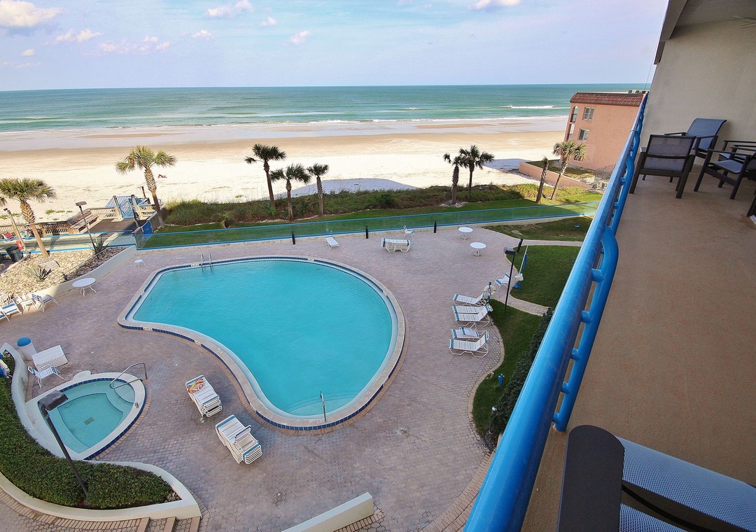 * Large Balcony with Pool and Beach Views