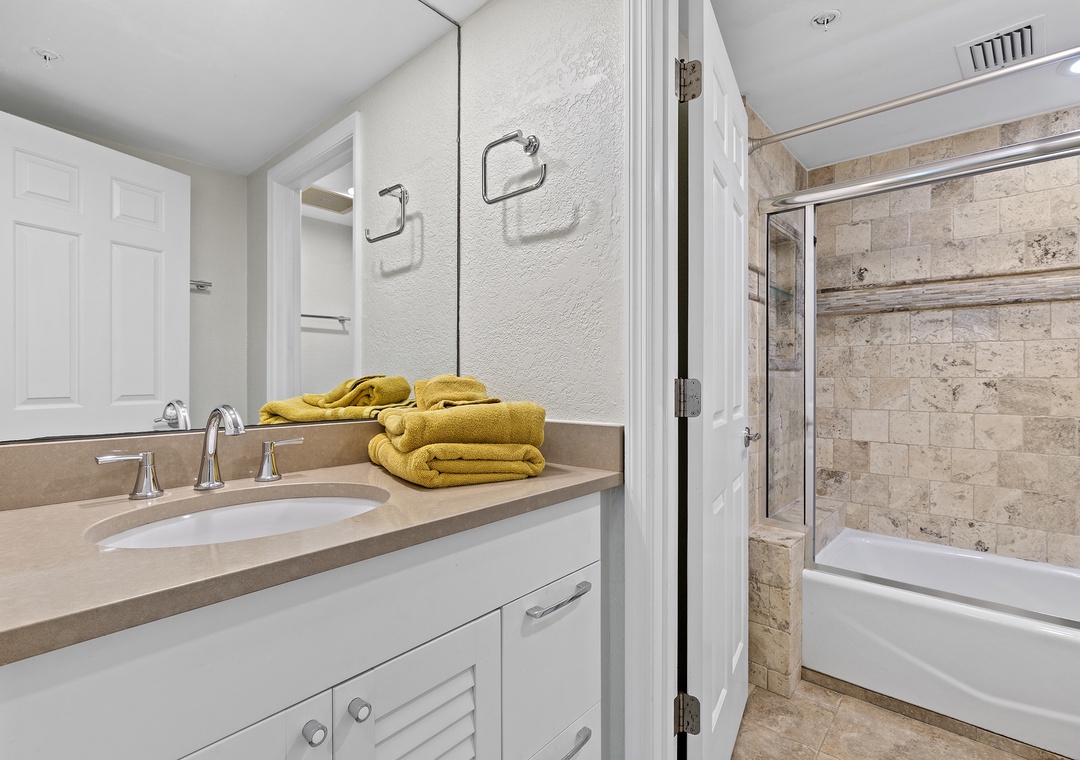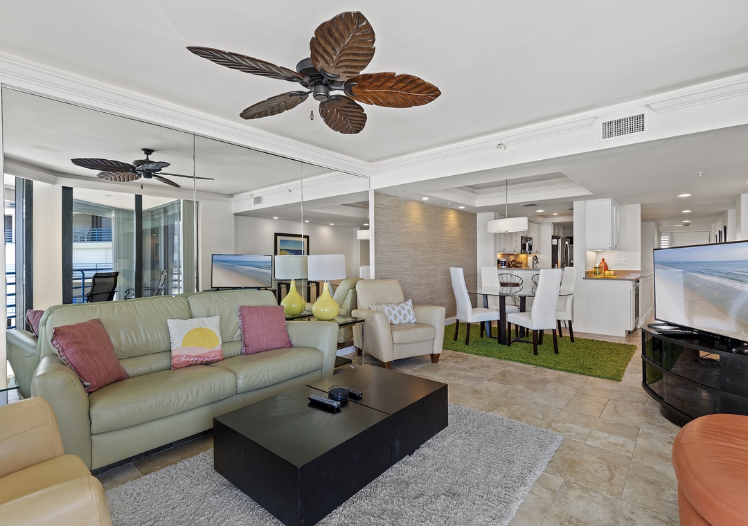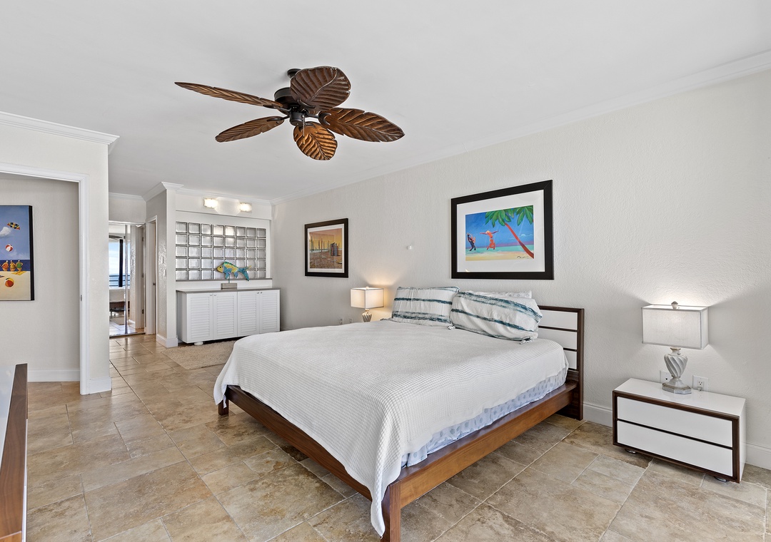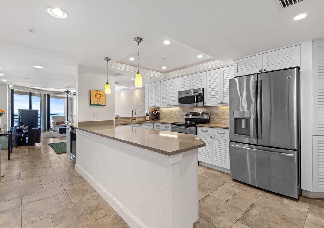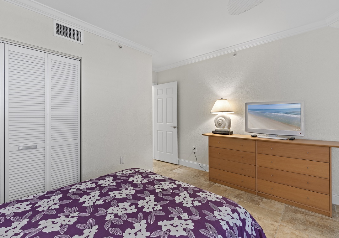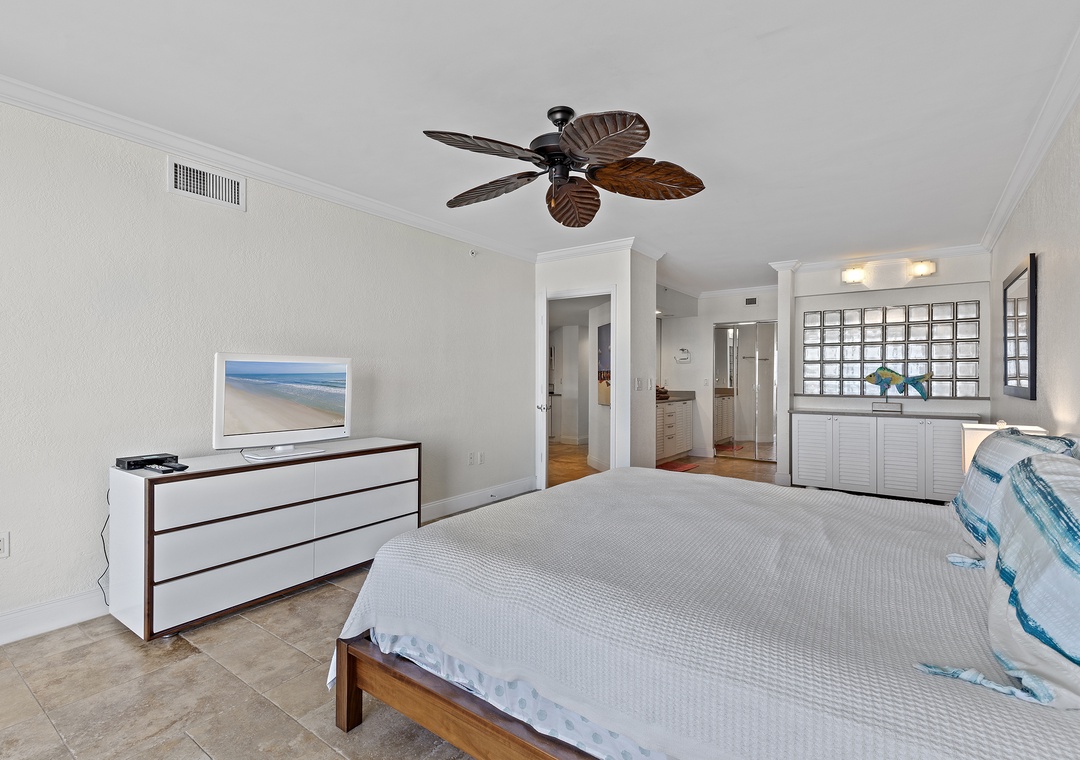 Ebb Tide 502 is an updated condo featuring a wide-open floor plan with stunning tile flooring throughout and breathtaking ocean views from nearly every room. The large private balcony is perfect for al fresco dining or unwinding with a good book while listening to the soothing ocean waves. The well-equipped kitchen has everything you need to create your favorite meals. When it’s time to rest and recharge, you have two spacious bedrooms to choose from. The primary bedroom features a king bed, flat-screen TV, and private access to the balcony, offering direct ocean views right from your pillow. The renovated primary bathroom includes a large, tiled walk-in shower. In the guest bedroom, you’ll find two comfortable double beds, sleeping up to 6 guests comfortably. Come see why the fun never stops at Ebb Tide 502!