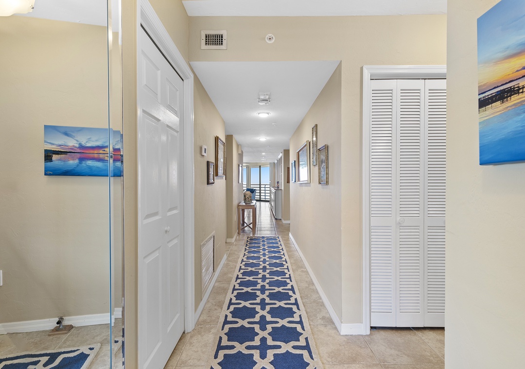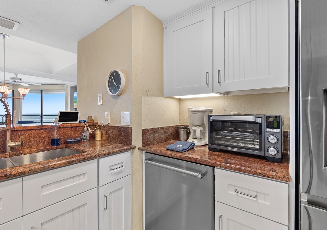 This spacious 2-bedroom, 2-bath condo offers breathtaking ocean views, providing the ultimate coastal getaway. From the moment you arrive, you'll be captivated by the soothing sound of waves and the sight of pristine sandy shores right outside your window. The primary bedroom is a serene haven featuring a plush king-size bed, an attached private bathroom, and calming decor designed for rest and relaxation. The inviting guest bedroom also boasts a king-size bed, ensuring premium comfort for your family or friends. Both rooms offer the perfect combination of tranquility and modern elegance. Prepare meals with ease in the fully stocked kitchen, which is equipped with modern appliances, cookware, and all the essentials needed to make dining a breeze. While the kitchen does not include a standard oven, it features a conventional microwave and a toaster oven, perfect for preparing a variety of meals. The open living area is a cozy space where you can unwind, enjoy conversation, or simply relax after a day spent exploring the beach. Step out onto your private balcony and take in the stunning ocean views. Whether you're sipping your morning coffee or watching the sunset, this vantage point is a constant reminder of the beauty of beachfront living. With direct beach access, you’re never far from the ocean’s edge. Nearby amenities, such as a pool (if applicable) and local attractions, offer plenty of opportunities for adventure and leisure. Whether you’re here for a romantic escape or a family getaway, this condo is the perfect home base for creating unforgettable memories. Book your stay now and discover the magic of beachfront living!