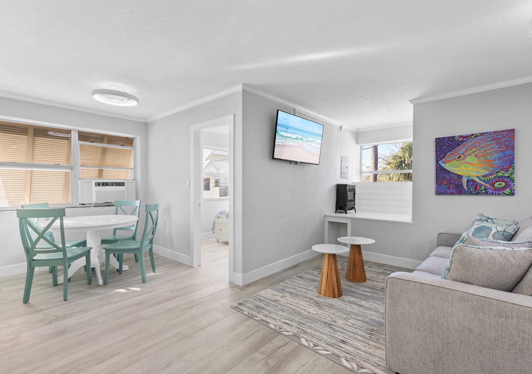Don’t miss the chance to stay in this beautifully updated historic suite, where every corner tells a story. Whether you're here for a long weekend or an extended stay, Flagler Suites 1 puts you at the center of New Smyrna Beach’s most exciting, fun-filled neighborhood — noisy, lively, and full of character.