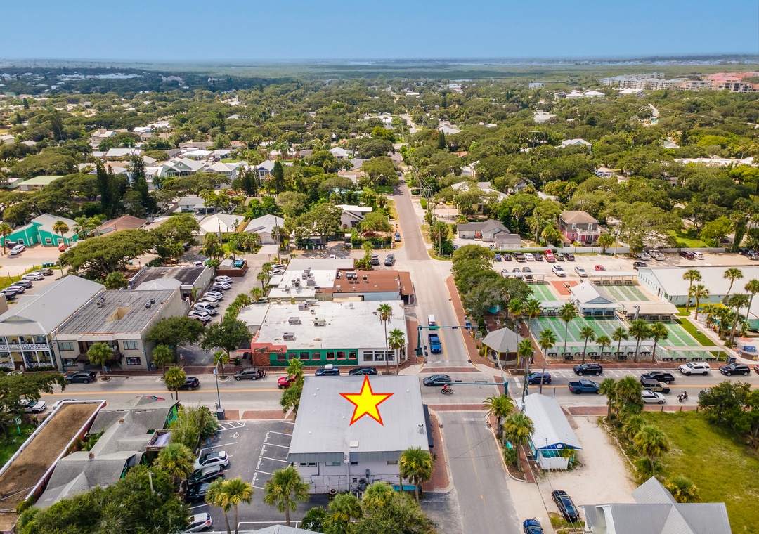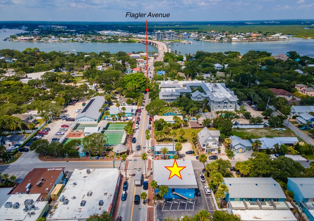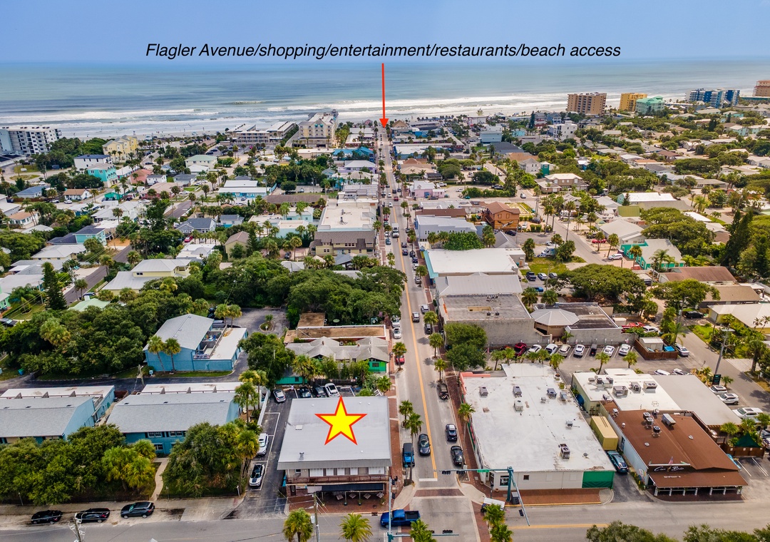 This charming 1-bedroom, 1-bathroom suite is located on the second floor of a truly historic building, nestled right on lively Flagler Avenue — the beating heart of the beachside scene. Known for its fun, vibrant energy, this area is where local bands play, laughter spills out from open patios, and live music drifts through the air nearly every night. It's a lively, spirited environment — a perfect fit if you're looking to be in the middle of all the action.