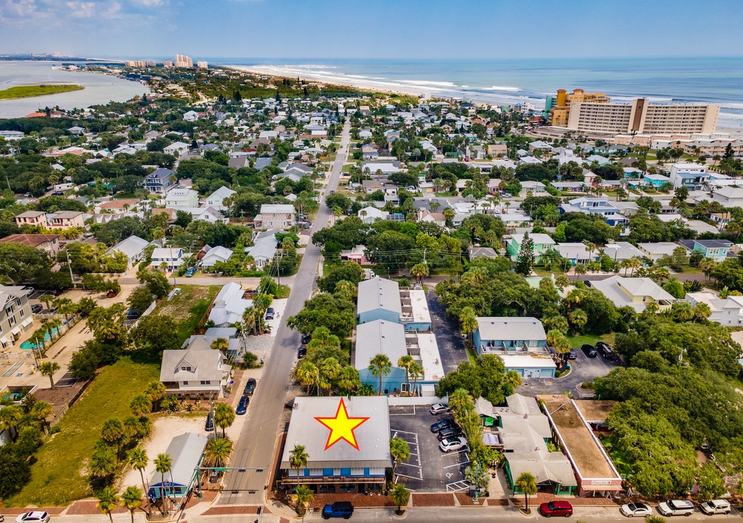 Flagler Suites is the perfect home base for those who love exploring and immersing themselves in the local culture of New Smyrna Beach. Nestled in the heart of the vibrant Flagler Avenue, these suites are located on the second floor above a charming restaurant and shop, giving you a true sense of community. Each day, you’ll find yourself just steps away from local favorites: grab your morning coffee and brunch at Third Wave Café, enjoy a refreshing smoothie at the colorful GoJuice, or savor a delicious burger at the oceanfront Breakers. End your evening with margaritas at Clancy's Cantina, just around the corner. Flagler Avenue leads directly to the beach, so you can easily stroll to the sand and waves for a relaxing day in the sun. The building itself holds a rich history, having been carefully preserved over time, maintaining its original charm while offering all the comforts of modern living. Whether you’re here to explore or simply unwind, Flagler Suites offers the perfect blend of old-world character and a prime location to experience all that New Smyrna Beach has to offer.