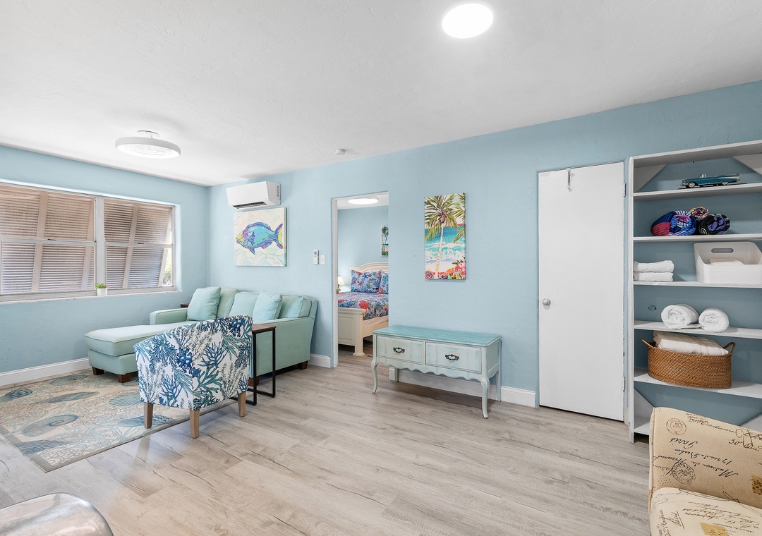 This charming 1-bedroom, 1-bathroom suite is located on the second floor of a truly historic building, nestled right on lively Flagler Avenue — the beating heart of the beachside scene. Known for its fun, vibrant energy, this area is where local bands play, laughter spills out from open patios, and live music drifts through the air nearly every night. It's a lively, spirited environment — a perfect fit if you're looking to be in the middle of all the action.