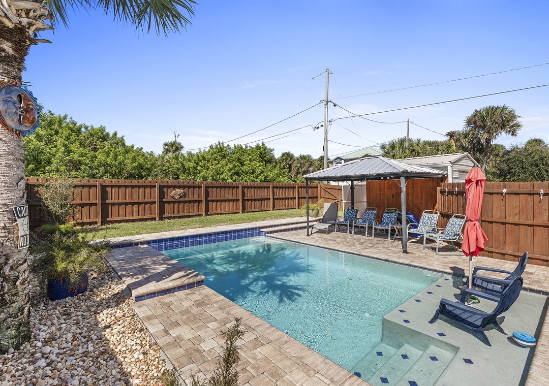 Welcome to the Grand Oasis, a perfect pet-friendly, beach getaway for larger groups. Rent this entire triplex which includes a total of six bedrooms, three bathrooms, three kitchens, a beautiful private pool surrounded by a privacy fence and additional pool fence and covered patio along with amazing outdoor space, grill, hot tub and a fire pit! Each of the three units has their own private entrance and parking for six vehicles. The location is perfect as it is close proximity to the main grocery store, beach and numerous restaurants. Close driving distance to Flagler Avenue. Should you be traveling with a smaller group, you can rent Poolside Oasis or Beachside Oasis at a lesser rate.