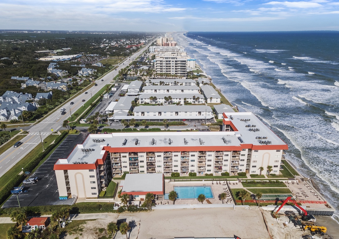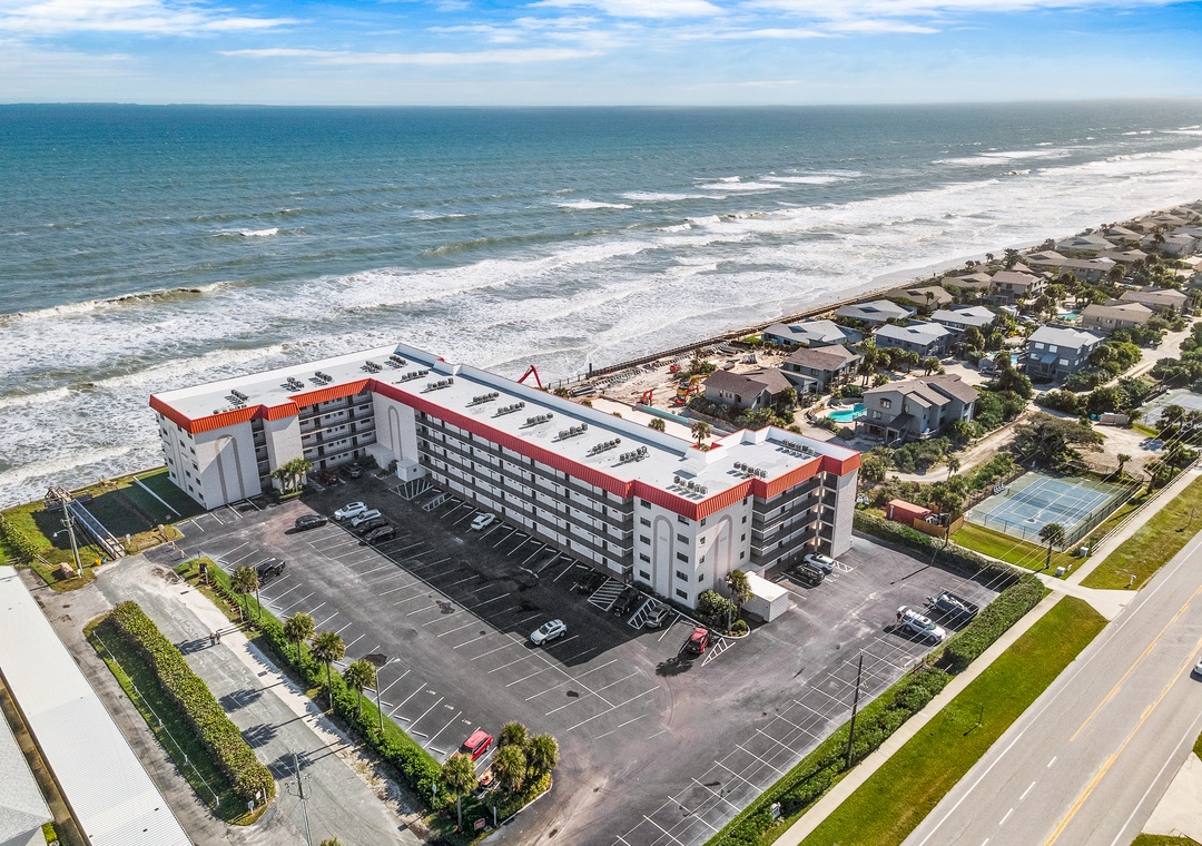This direct oceanfront condominium complex consists of 50 private units in New Smyrna Beach. From the moment you arrive, the sound of the ocean waves and the fragrance of the salt air will transport you to a vacation state of mind. Relax poolside or bask in the sunshine on Hacienda del Sol's expansive sun deck. Gather in the Clubhouse, enjoy a game of shuffleboard, and top off your day with dinner grilled down by the beach. Washers and dryers are located on every floor. Directly across the street from the complex, you'll find a small shopping center with local restaurants and unique novelty shops. For your shopping convenience, Dollar General is .4 miles away, Publix grocery store is just 2.4 miles south on South Atlantic Avenue.