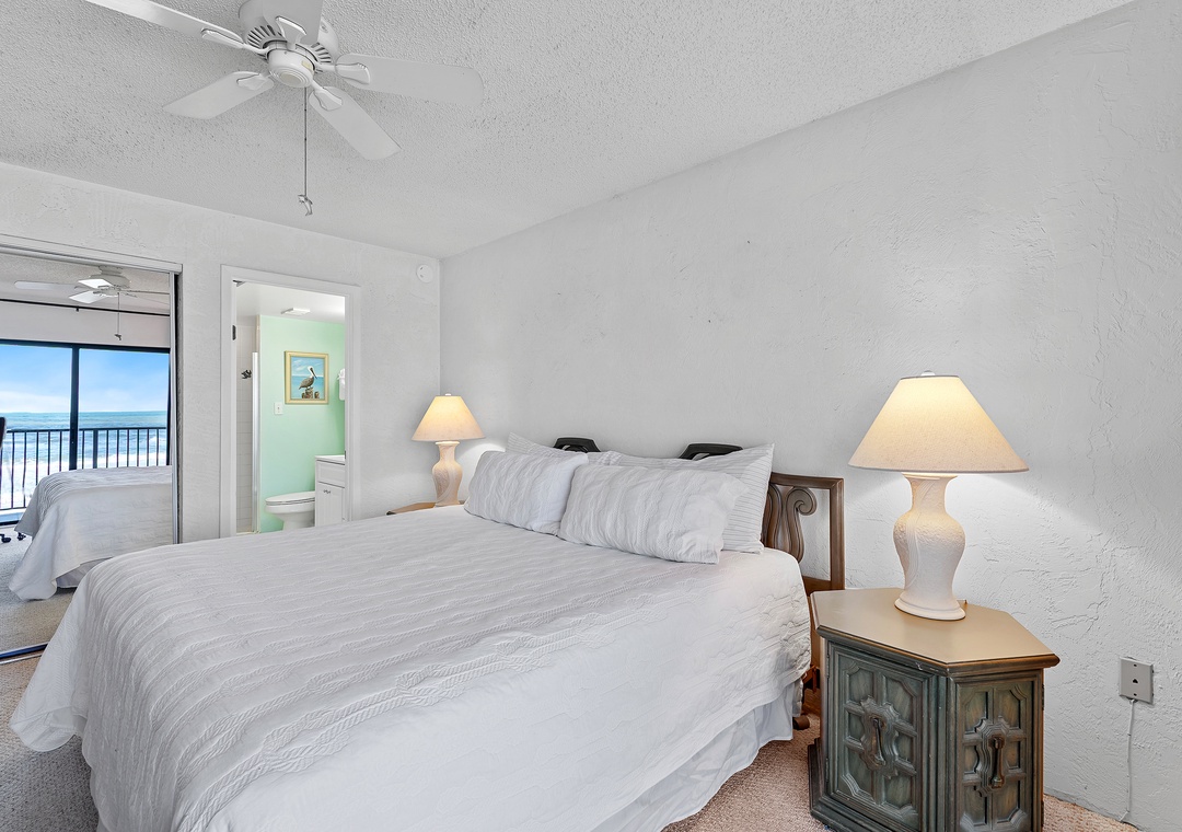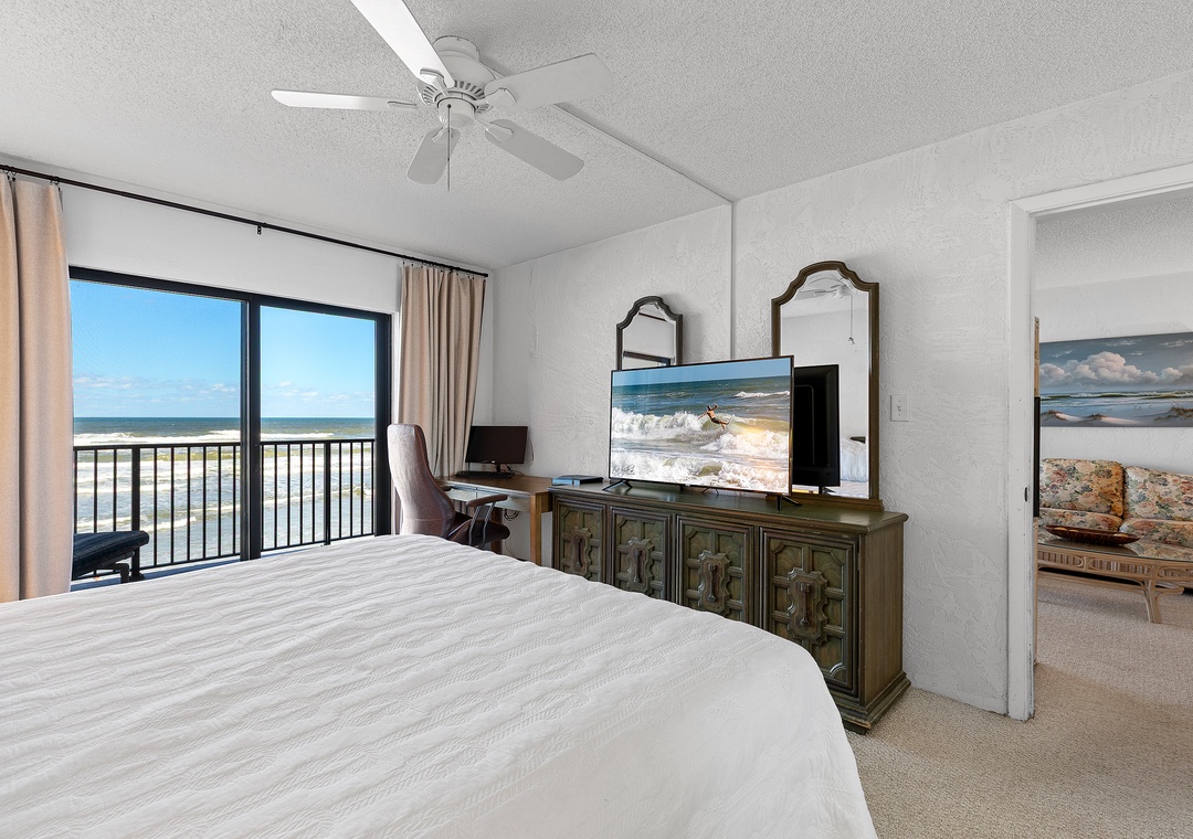 Wake up to the sound of the waves in this direct oceanfront 2-bedroom, 2-bath condo on the 2nd floor—located right on a non-drive section of the beach. With sweeping panoramic views and a double-size balcony accessible from both the king primary bedroom and the living room, this beachfront getaway is your front-row seat to sunrises and sea breezes.