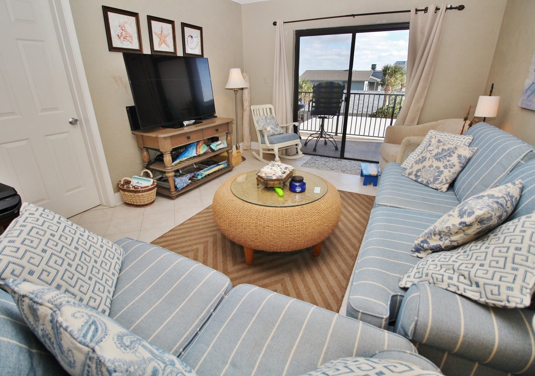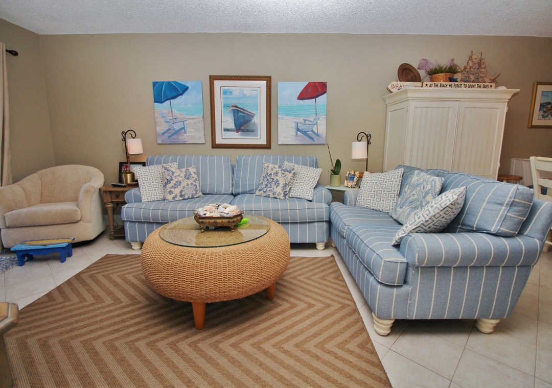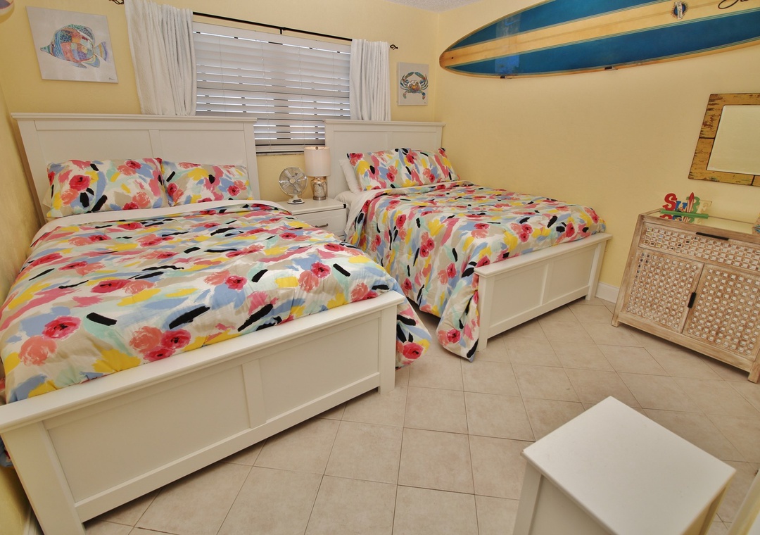 Let Hacienda del Sol II Unit 306 be your vacation home! The comfortable living room has a new sleeper sofa and love seat, as well as access to the balcony with a dazzling view of the pool and Atlantic coast. If cooking doesn't take you out of relaxation mode, you'll love preparing meals as the kitchen is fully equipped with a refrigerator, oven, microwave, and all the utensils you could need. This 2-bedroom, 2-bathroom condo has a king bed in the primary bedroom, and two double beds, and a TV in the second bedroom. New blankets and linens are provided. If you're working remotely, set up your home office at the new desk that's equipped with a plug-in monitor and printer. When you're not enjoying the sand and waves, compete against your loved ones with the board games and video games that are provided for family fun. There are two laundry rooms on each floor!