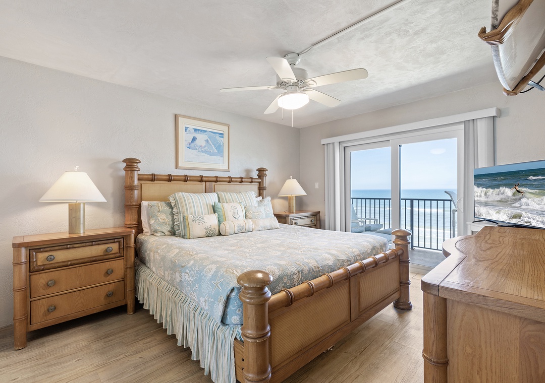 If direct ocean views and a tropical setting are at the top of your vacation list, this 2-bedroom, 2-bath oceanfront condo is a great fit. Patterned furnishings and a private balcony set the tone for an easy beach getaway.