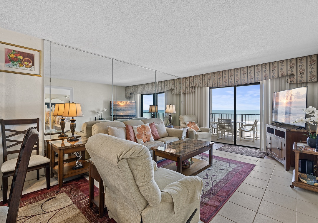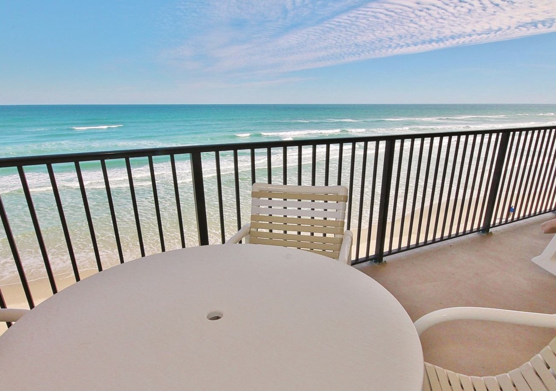 Great balcony to see the beach. Kitchen is a little out dated but you can pretty much cook anything with all the utensils and cookware provided. Laundry room is needing a little tlc (water bucket is kinda crazy). Plenty of space for a family dinner or to hangout on rainy afternoons. Beds are comfy and showers are very nice. Great pool and shuffle board area.- Posted: 7/5/2017