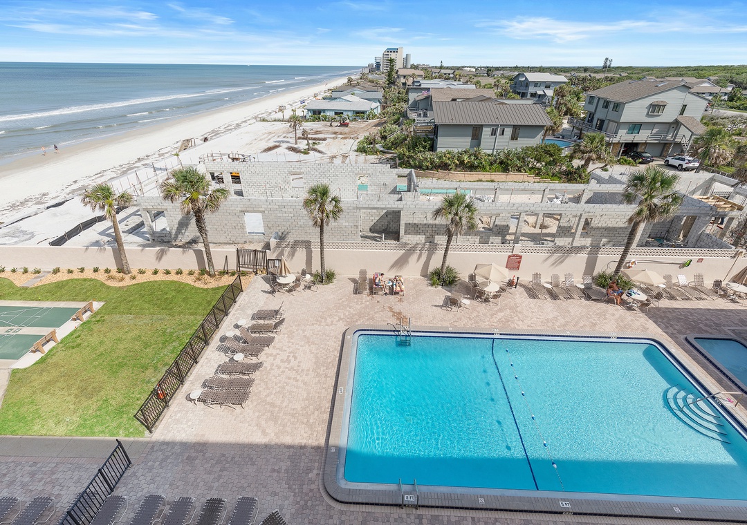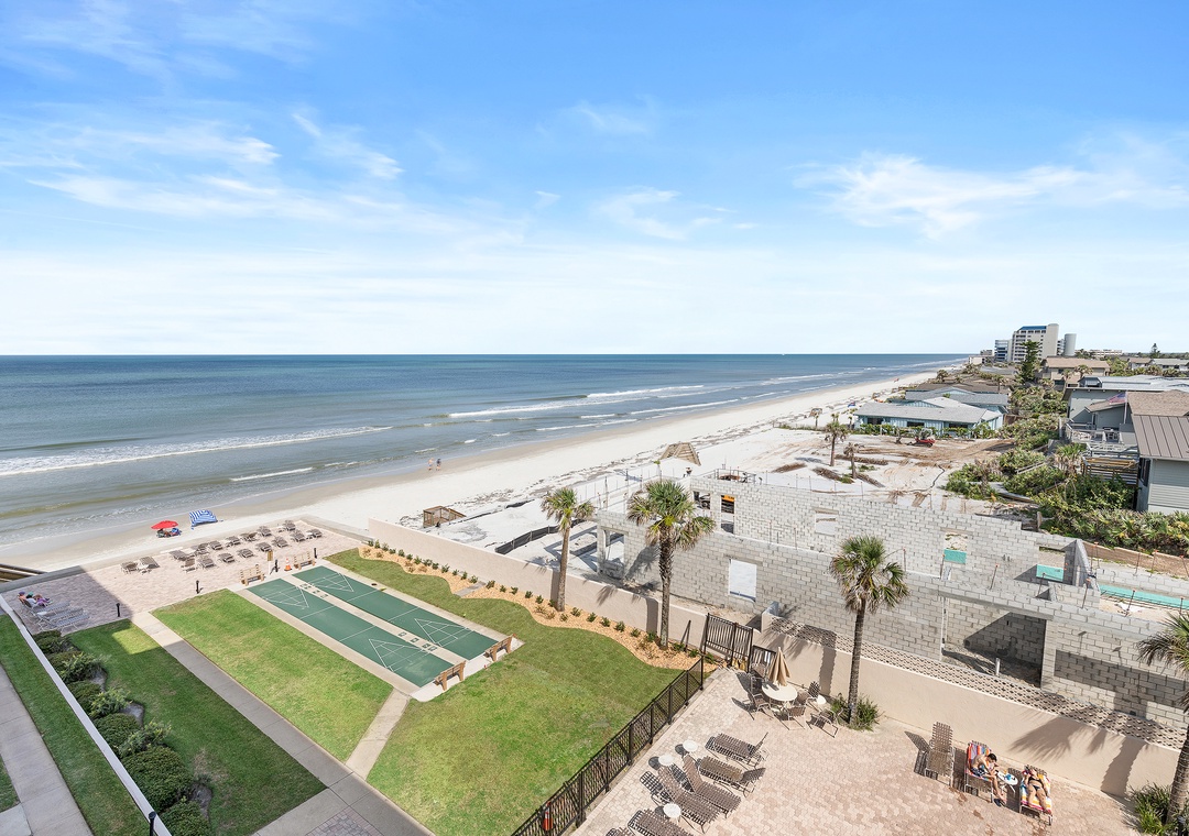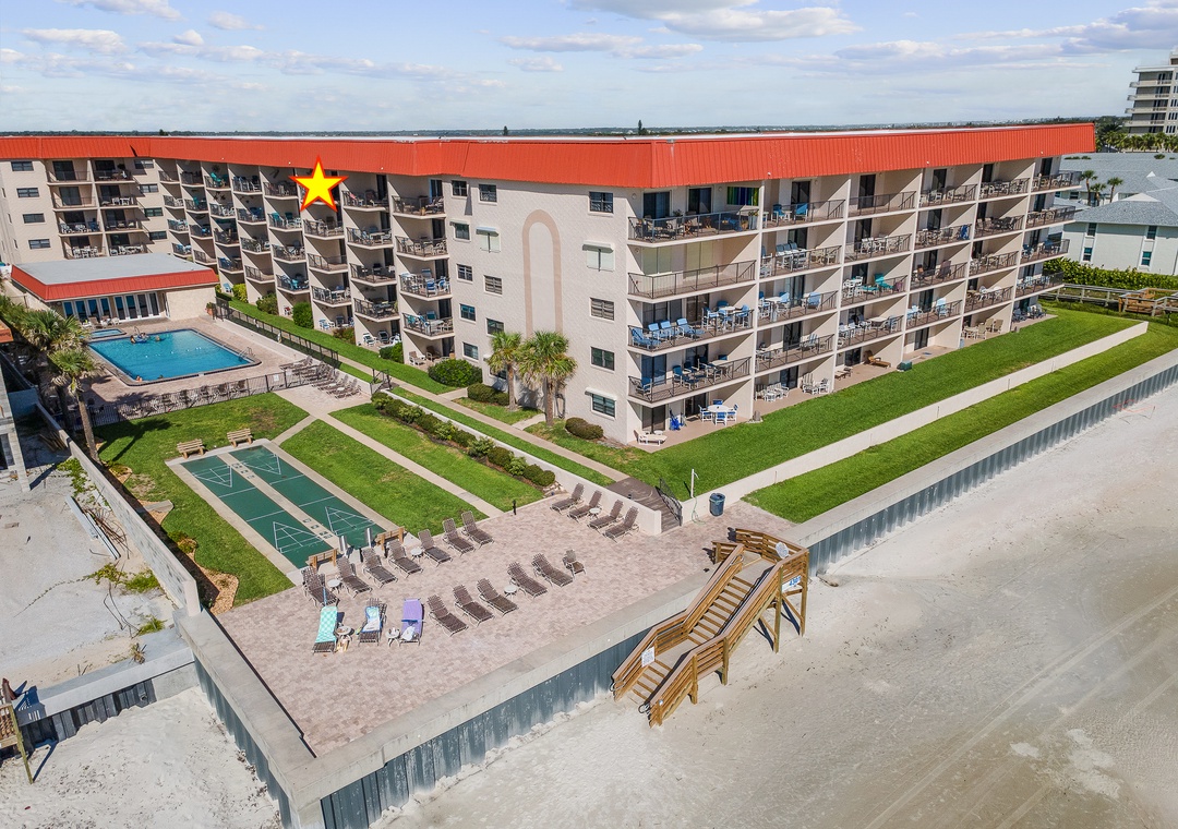 This direct oceanfront condominium complex of 50 private 1-, 2-, and 3-bedroom units in New Smyrna Beach. From the moment you arrive, the sound of the ocean waves and the fragrance of the salt air will transport you to a vacation state of mind. Relax poolside or bask in the sunshine on Hacienda del Sol's expansive sun deck. Gather in the Clubhouse, enjoy a game of shuffleboard, and top off your day with dinner grilled down by the beach. Washers and dryers are located on every floor. Directly across the street from the complex, you'll find a small shopping center with local restaurants and unique novelty shops. For your shopping convenience, Dollar General is .4 miles away, Publix grocery store is just 2.4 miles south on South Atlantic Avenue.
