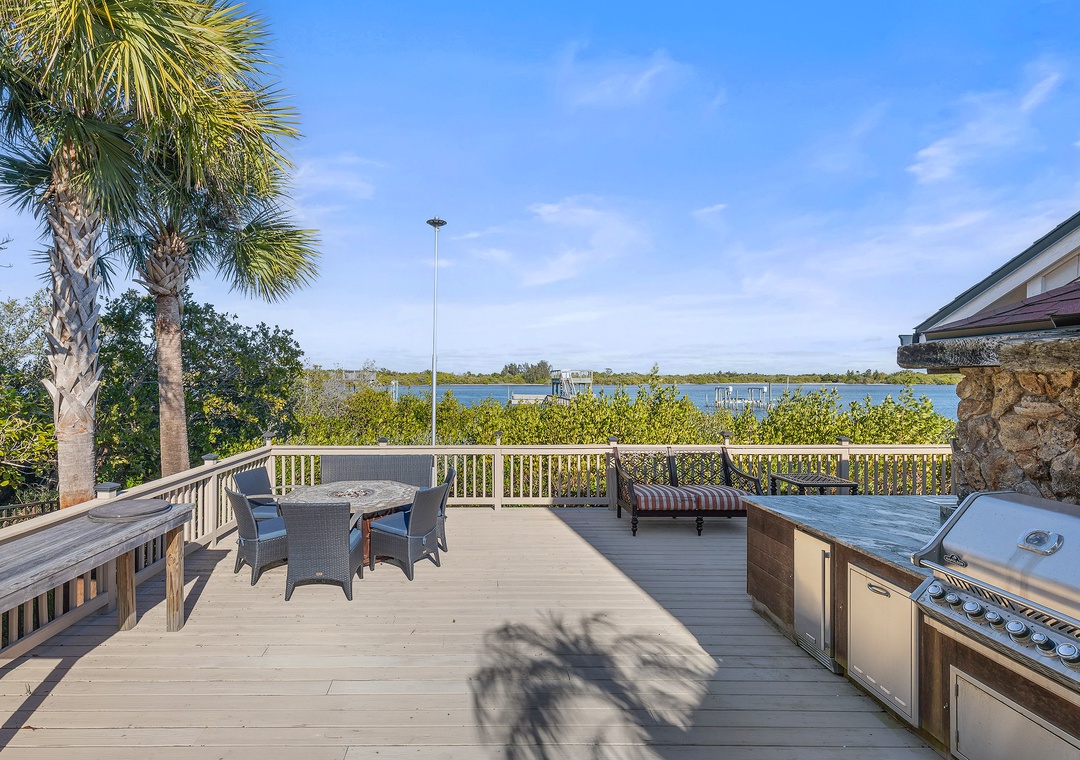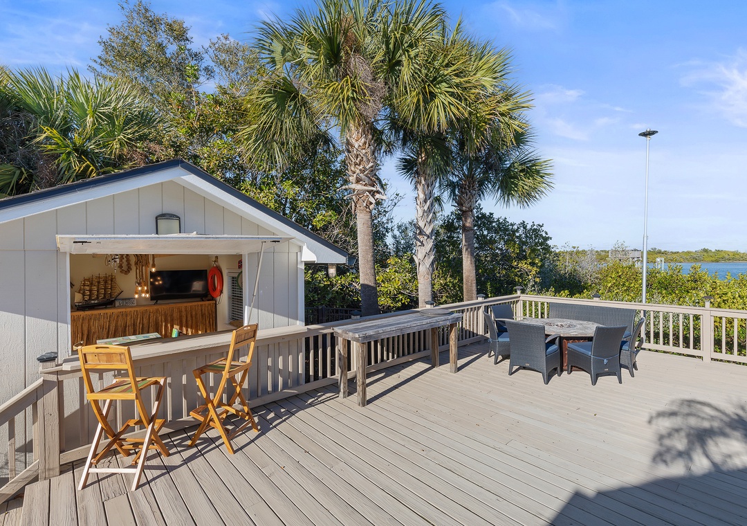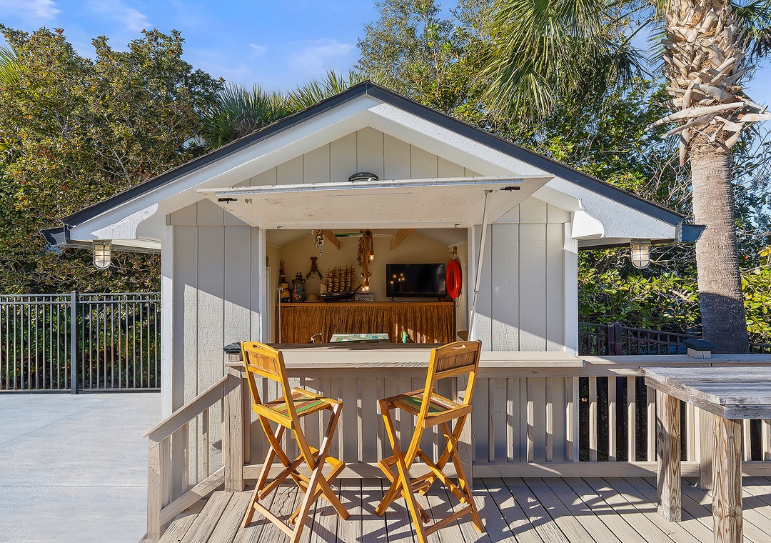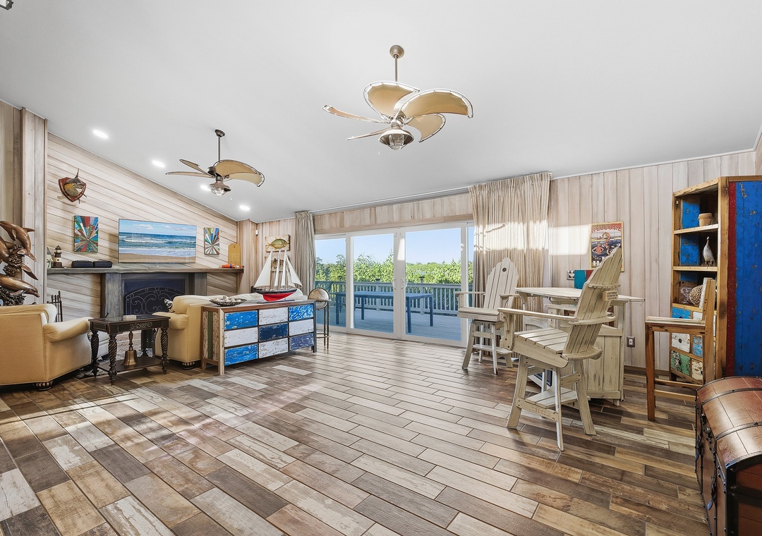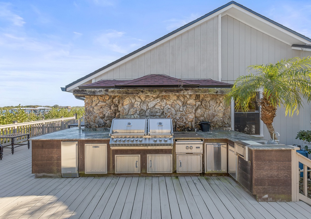 Inside, the home is designed for comfort and connection; light-filled living spaces, seamless indoor-outdoor flow, and inviting areas to gather with family and friends after a day on the water. Outdoors, the setting truly shines, offering the perfect backdrop for morning coffee, evening cocktails, and unforgettable riverfront moments. Lounge furniture, an outdoor kitchen, and multiple grills are available for a fun, festive time by the tiki hut. This house is perfect for outside enjoyment and playtime on the River.