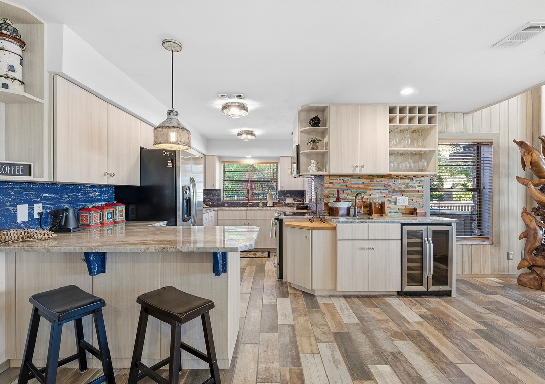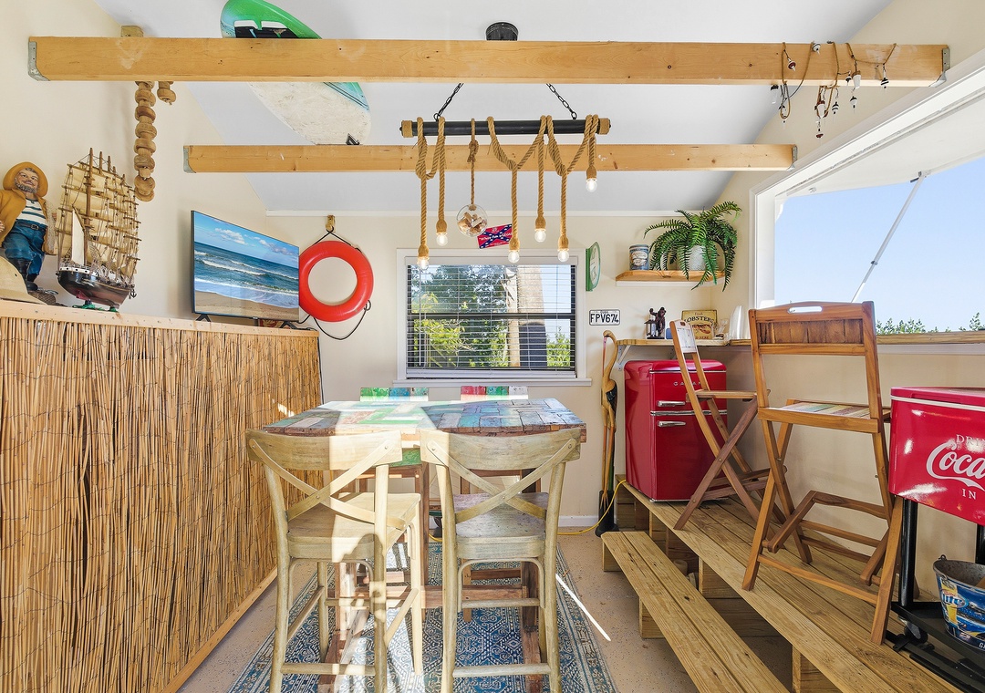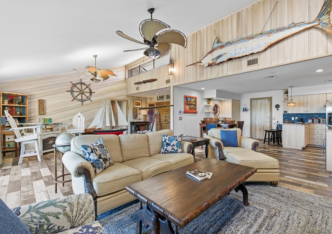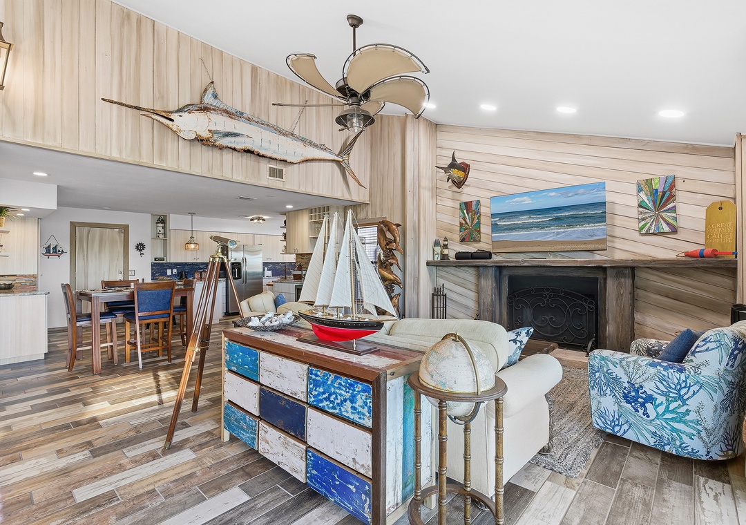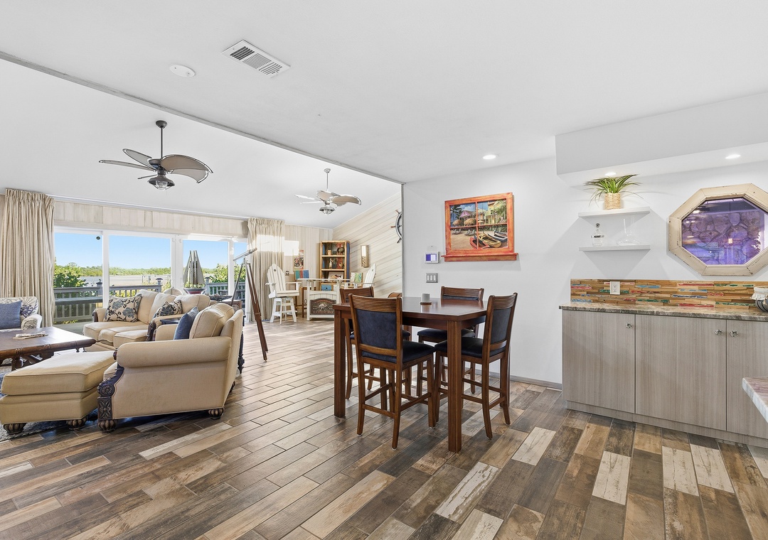 Inside, the home is designed for comfort and connection; light-filled living spaces, seamless indoor-outdoor flow, and inviting areas to gather with family and friends after a day on the water. Outdoors, the setting truly shines, offering the perfect backdrop for morning coffee, evening cocktails, and unforgettable riverfront moments. Lounge furniture, an outdoor kitchen, and multiple grills are available for a fun, festive time by the tiki hut. This house is perfect for outside enjoyment and playtime on the River.