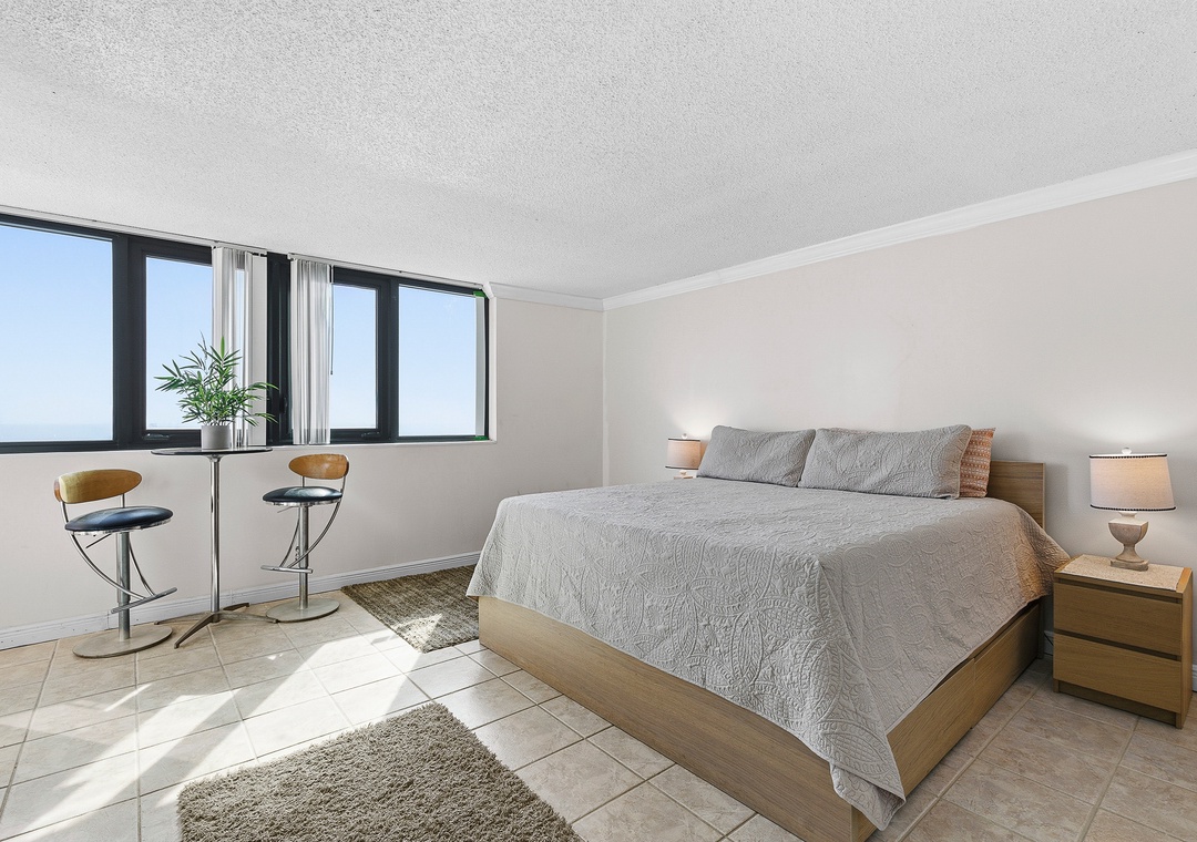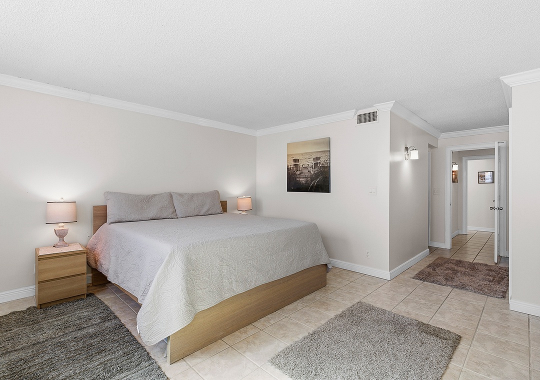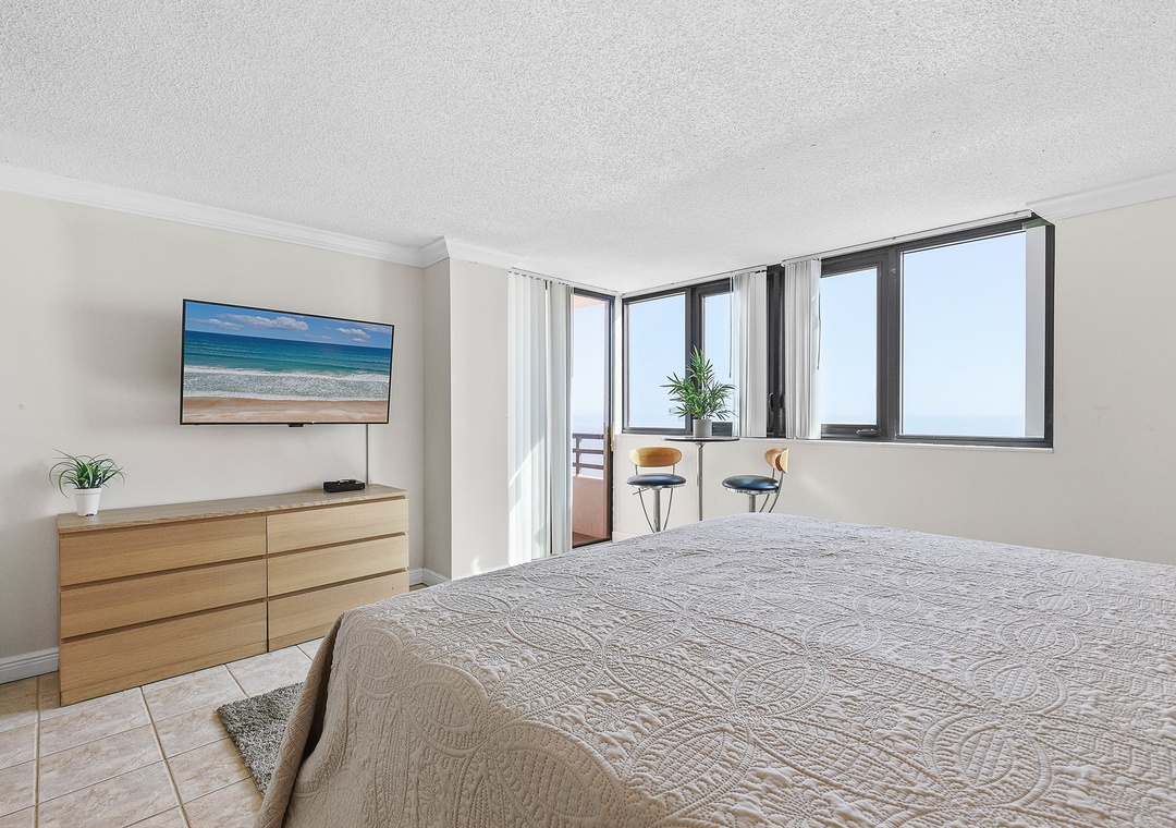 Primary Bedroom: King Bed + Ensuite and Balcony Access