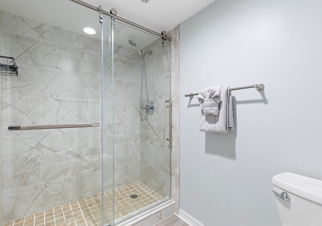 Primary Bedroom: Queen Bed with Ensuite Bathroom and Balcony Access
