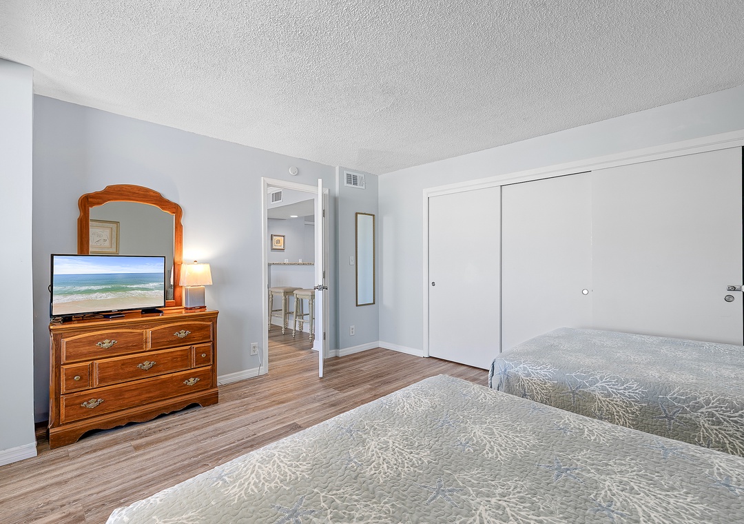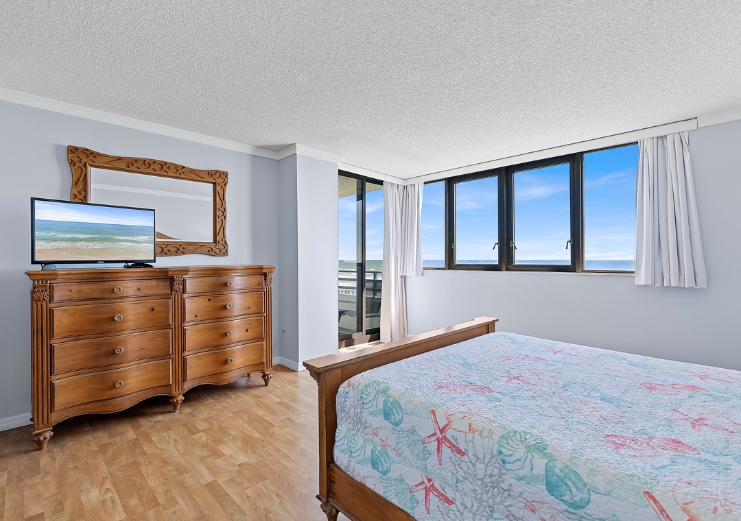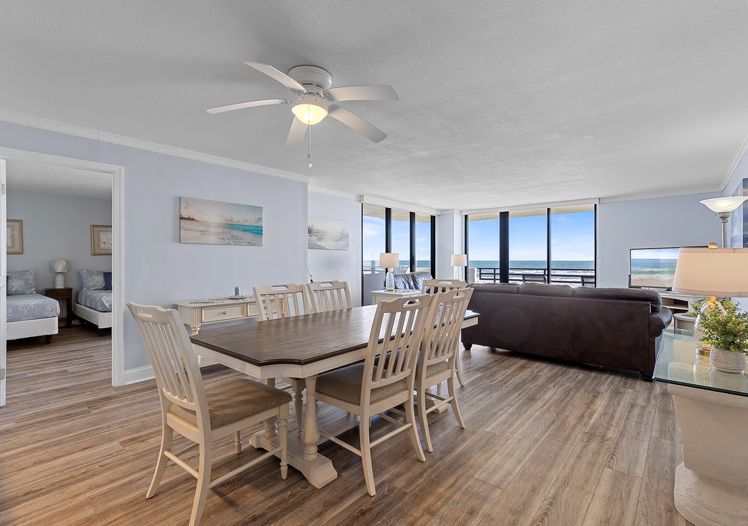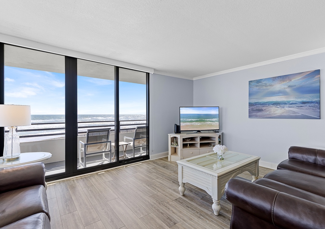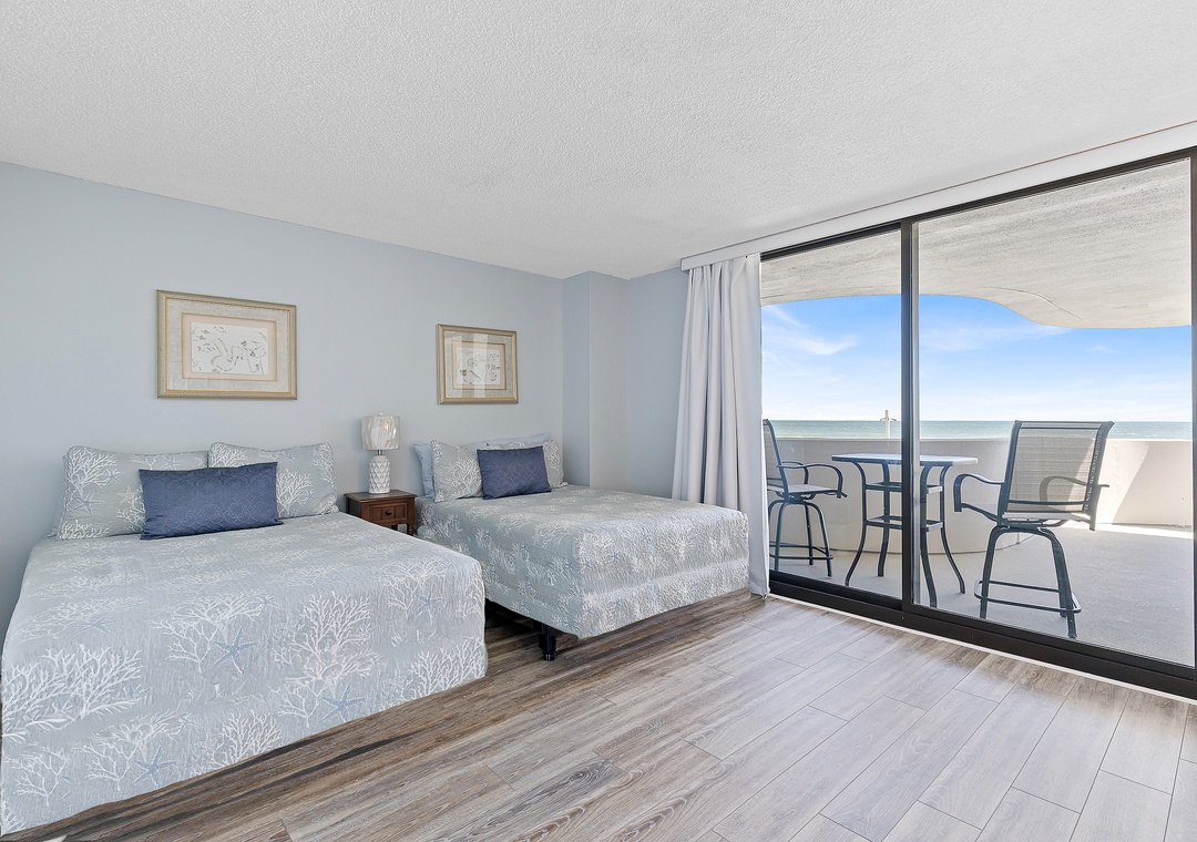 Welcome to your serene coastal escape in beautiful Daytona Beach! This spacious 2-bedroom, 2-bathroom condo sits on the 2nd floor of a beachfront complex, offering stunning, eye-level views of the Atlantic Ocean—so close, you’ll feel like you’re right in the waves. The primary bedroom features a plush queen bed, private ensuite, and direct balcony access, while the guest room includes two double beds and its own private-feeling section of the wraparound balcony. A sleeper sofa in the living room allows the condo to sleep up to 8 guests comfortably.