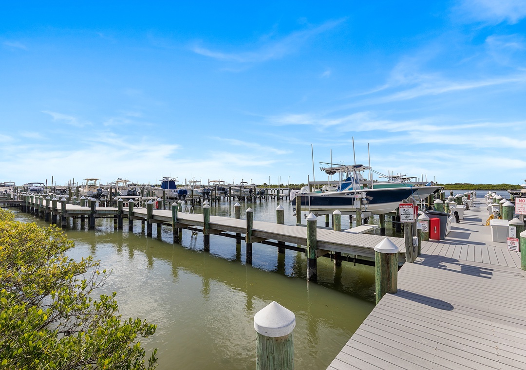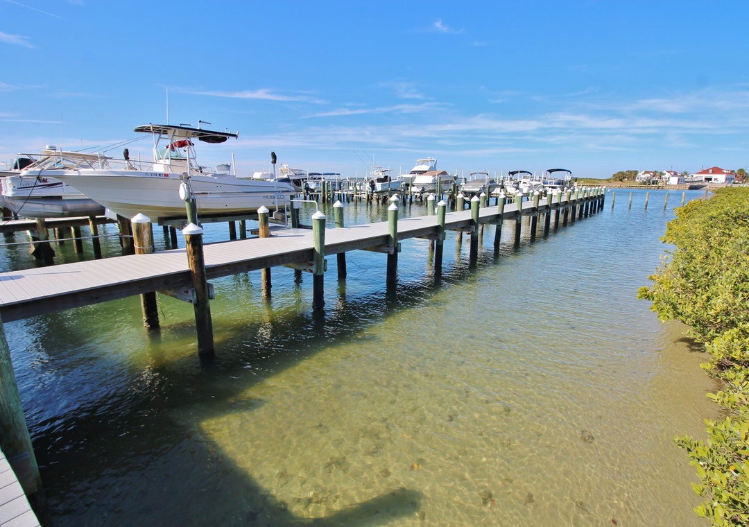 * Marina access with slips, utilities, and fish-cleaning stations