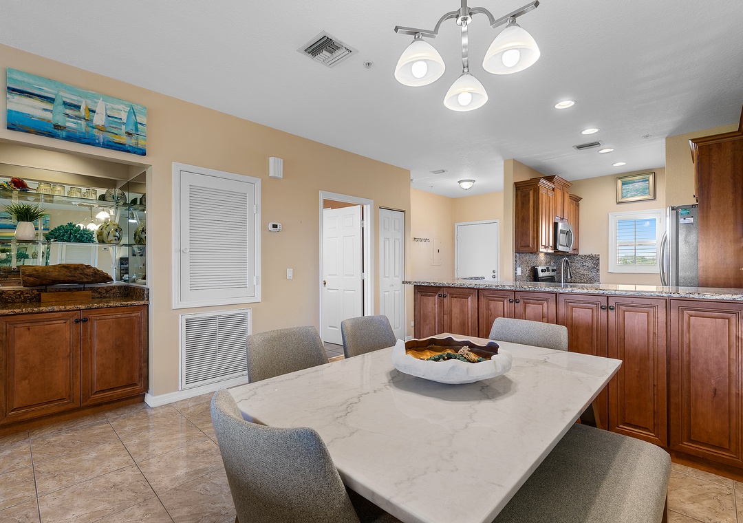 Walk to the beach and enjoy the amenities and gated access of Minorca just across the street.