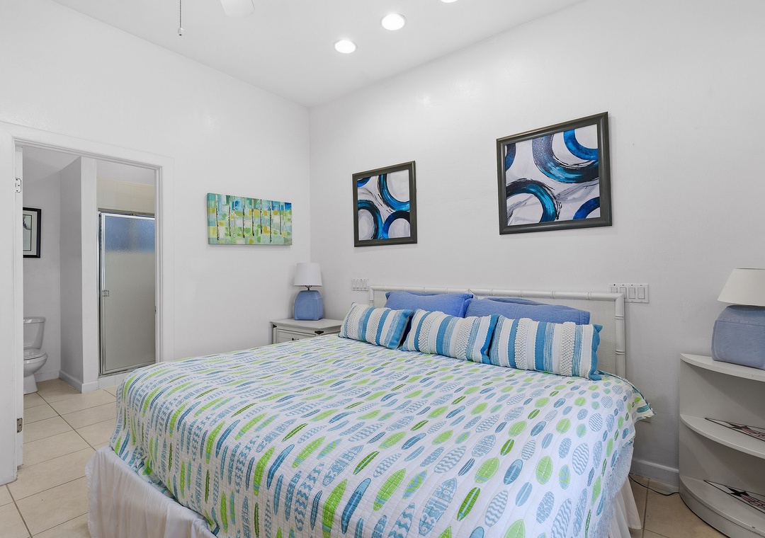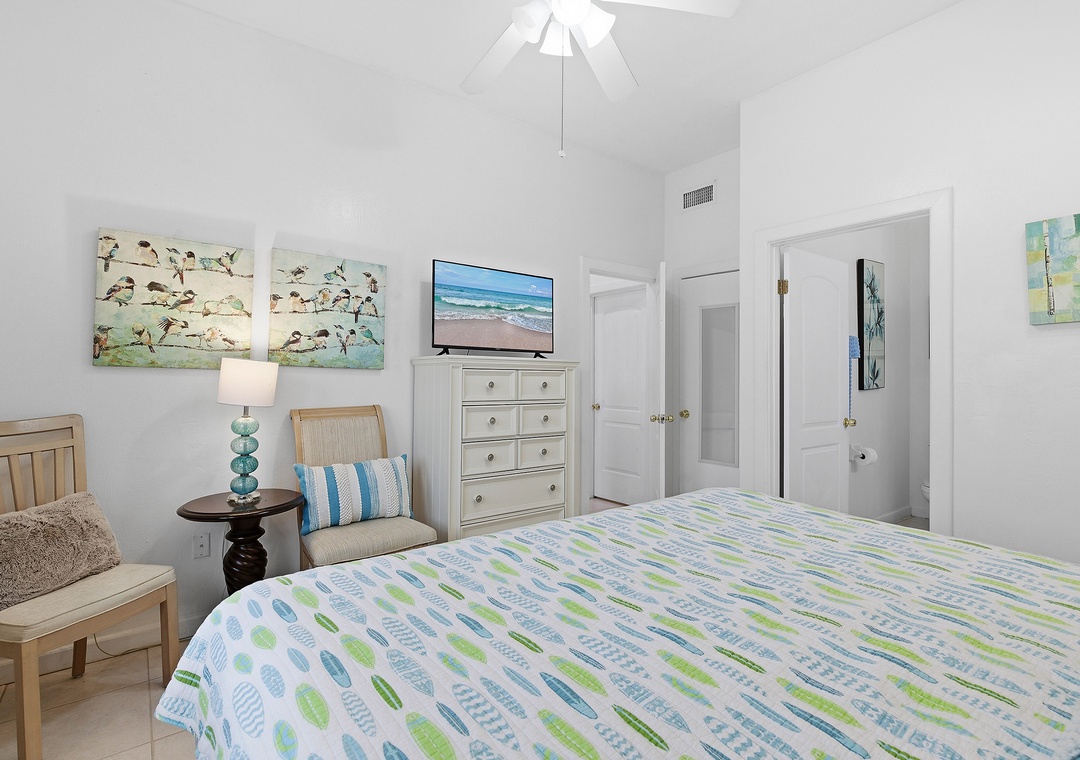 Primary Bedroom 1: King Bed Ensuite with Deck Access